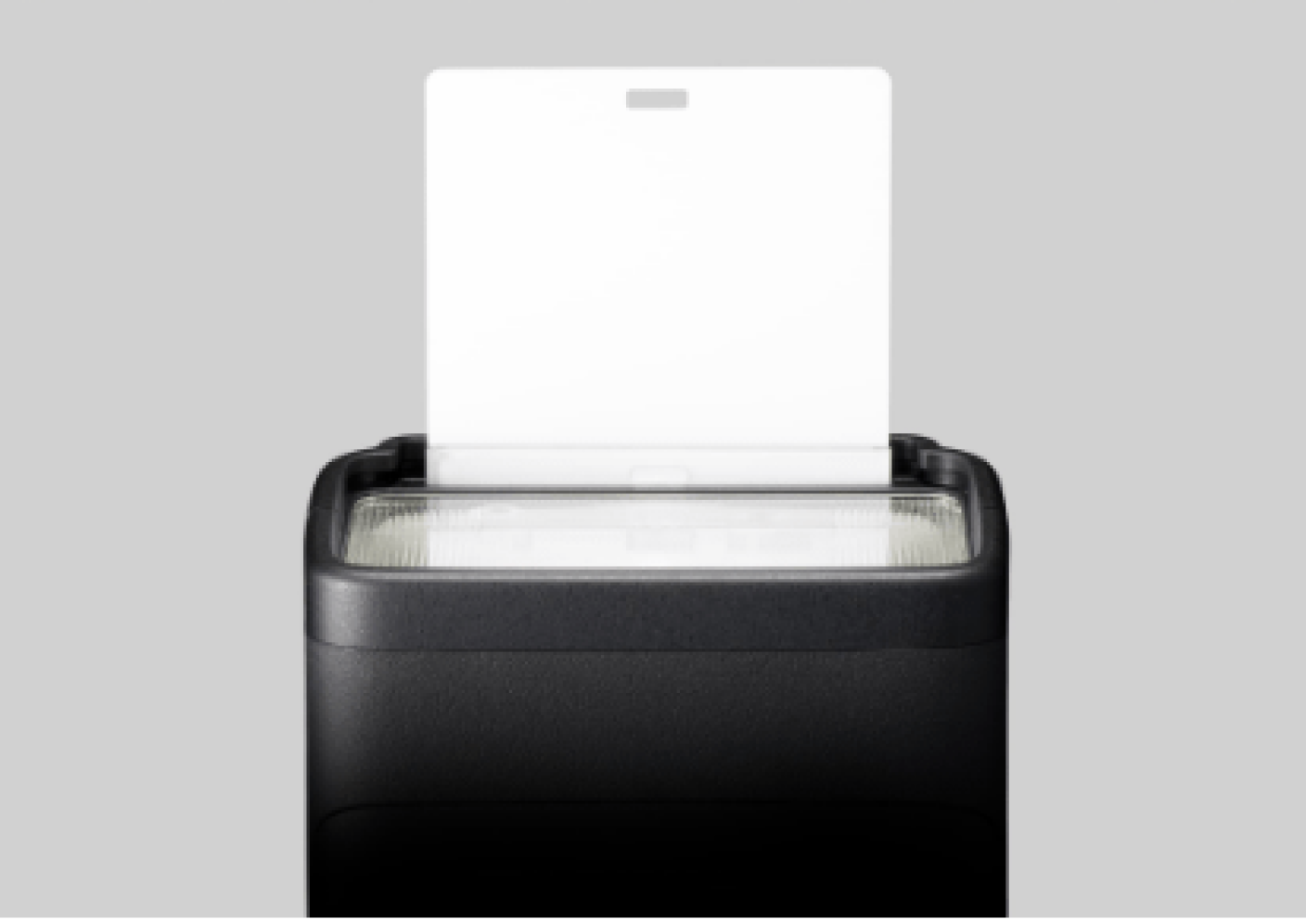 The flash is designed to work in three light distribution modes. Normal emission mode has basic light distribution for general photography, and another mode prioritizes guide number to obtain an even larger output. Flat light distribution mode has a characteristic of uniform light distribution by reducing the fall off of peripheral light. It is possible to select the mode in accordance with the purpose. -