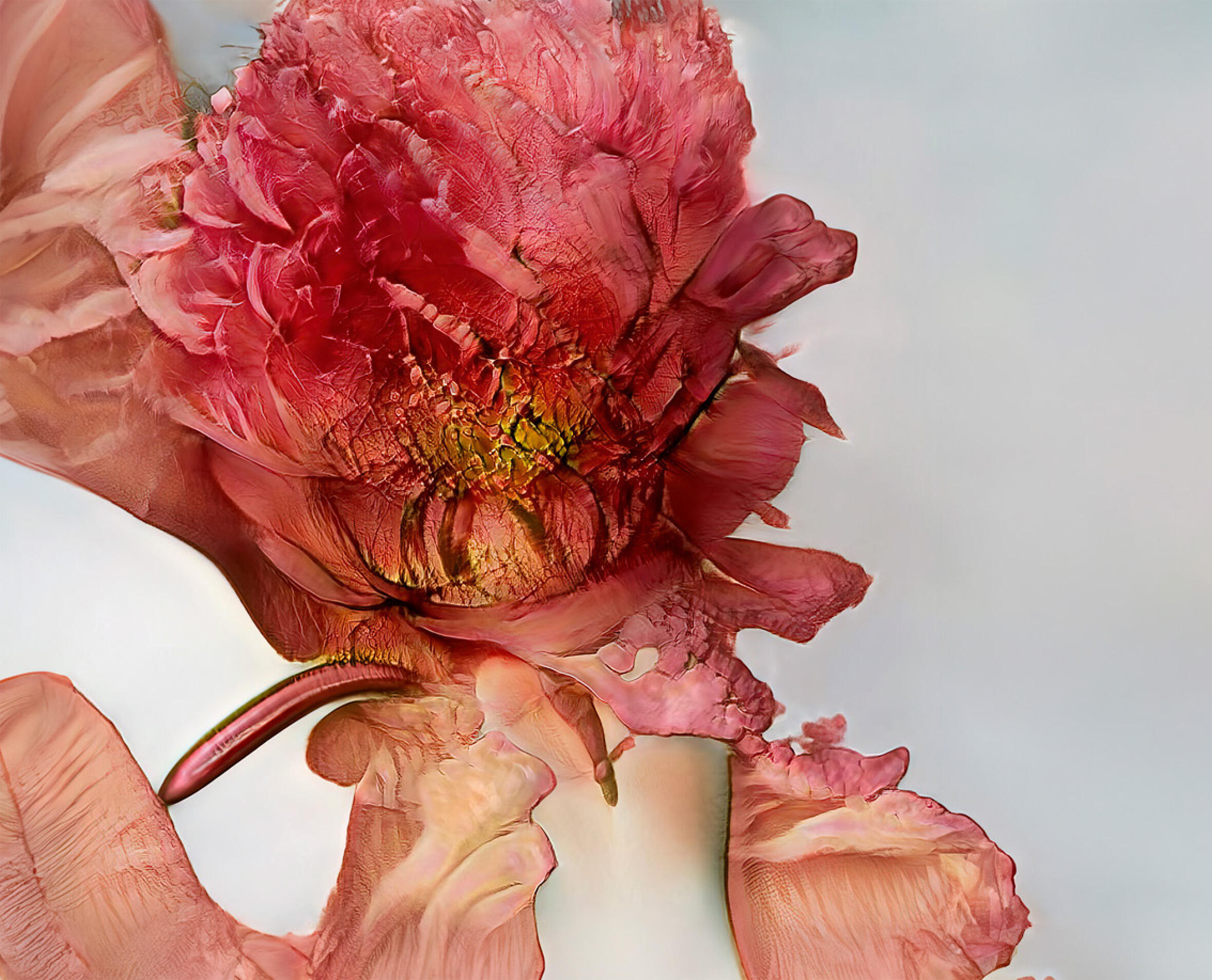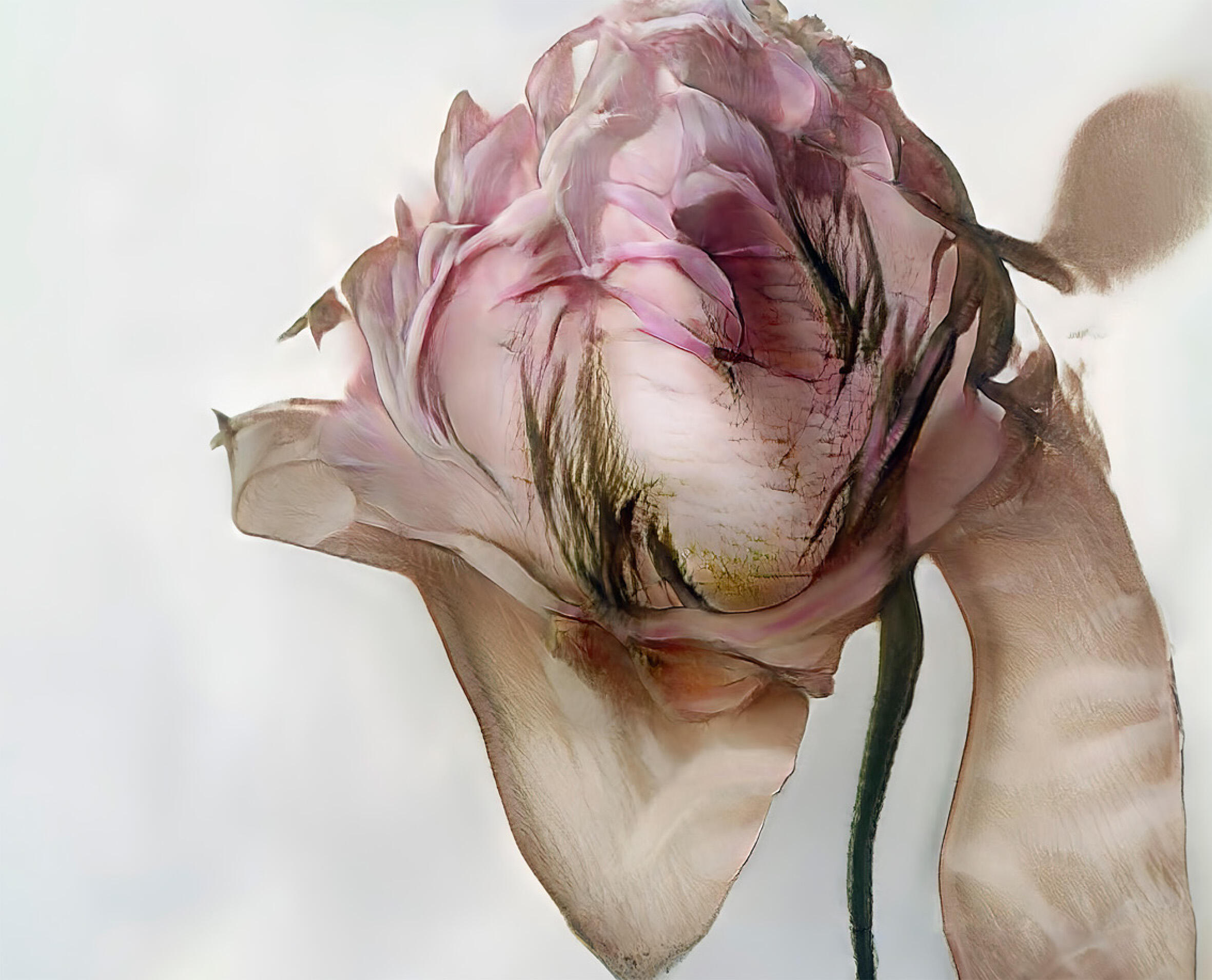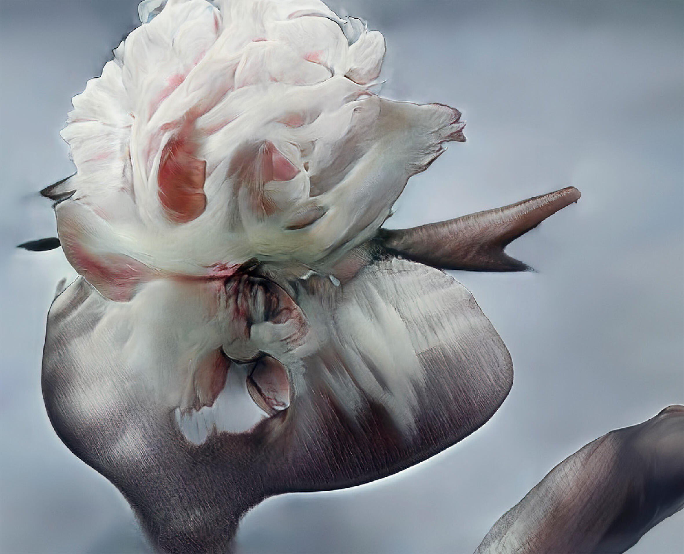 I uploaded only my own pictures—decades of flowers I've shot for Guerlain, Chanel, Lancôme—so it's ethically sourced, not harvesting other photographers' work. You feed it your archive and ask it to find links between images. It generates options. You choose what you like and feed those back in, training the model through your own choices. What I found charming was that it's not perfect, not realistic. It doesn't look like a flower you can pick.