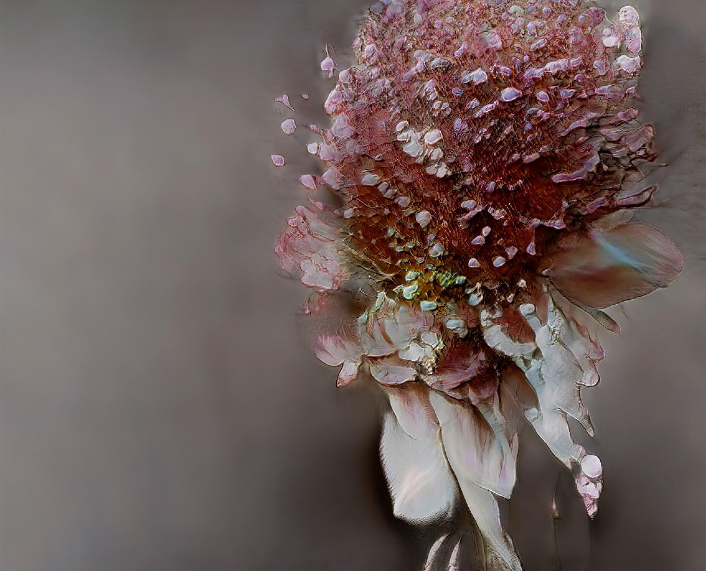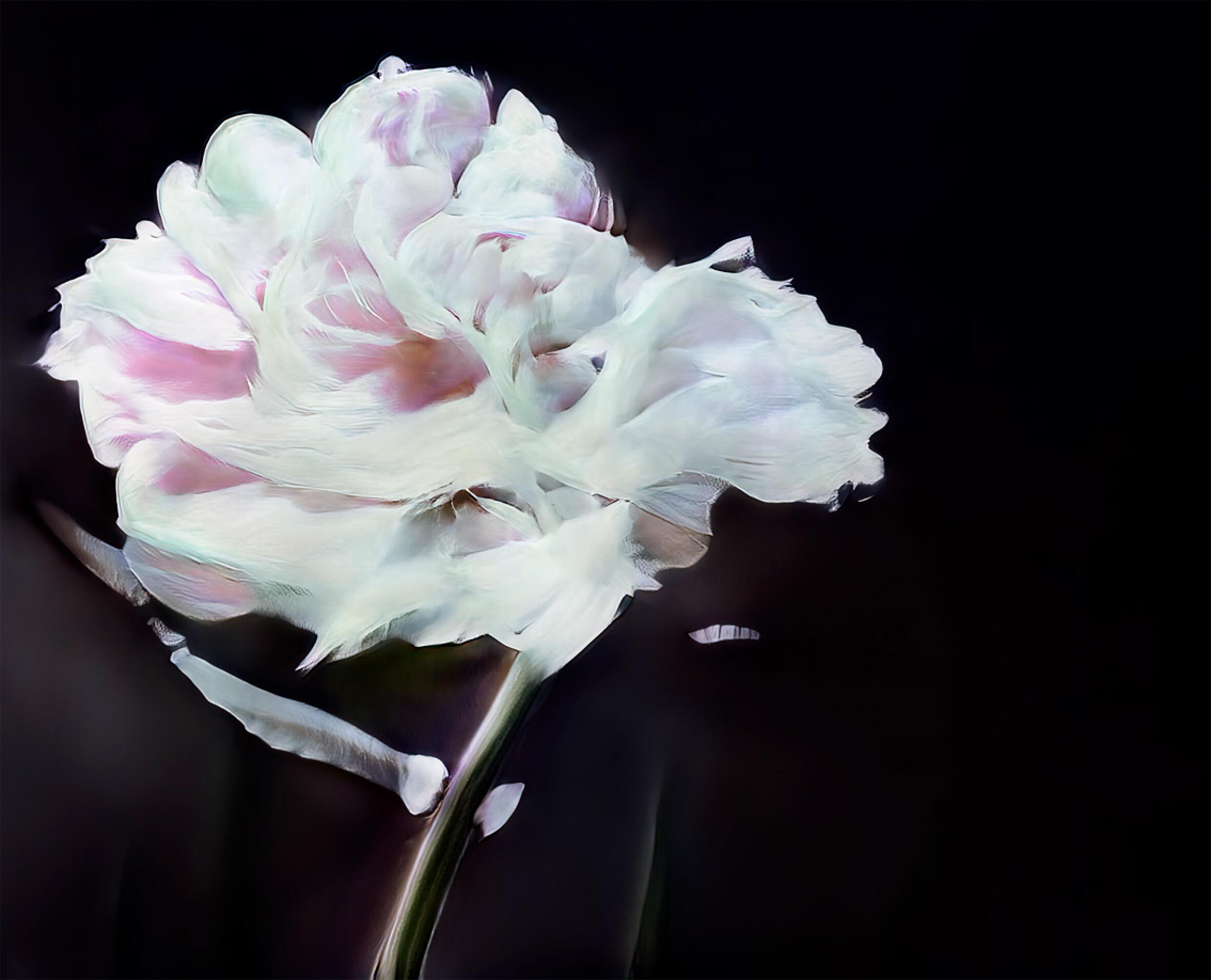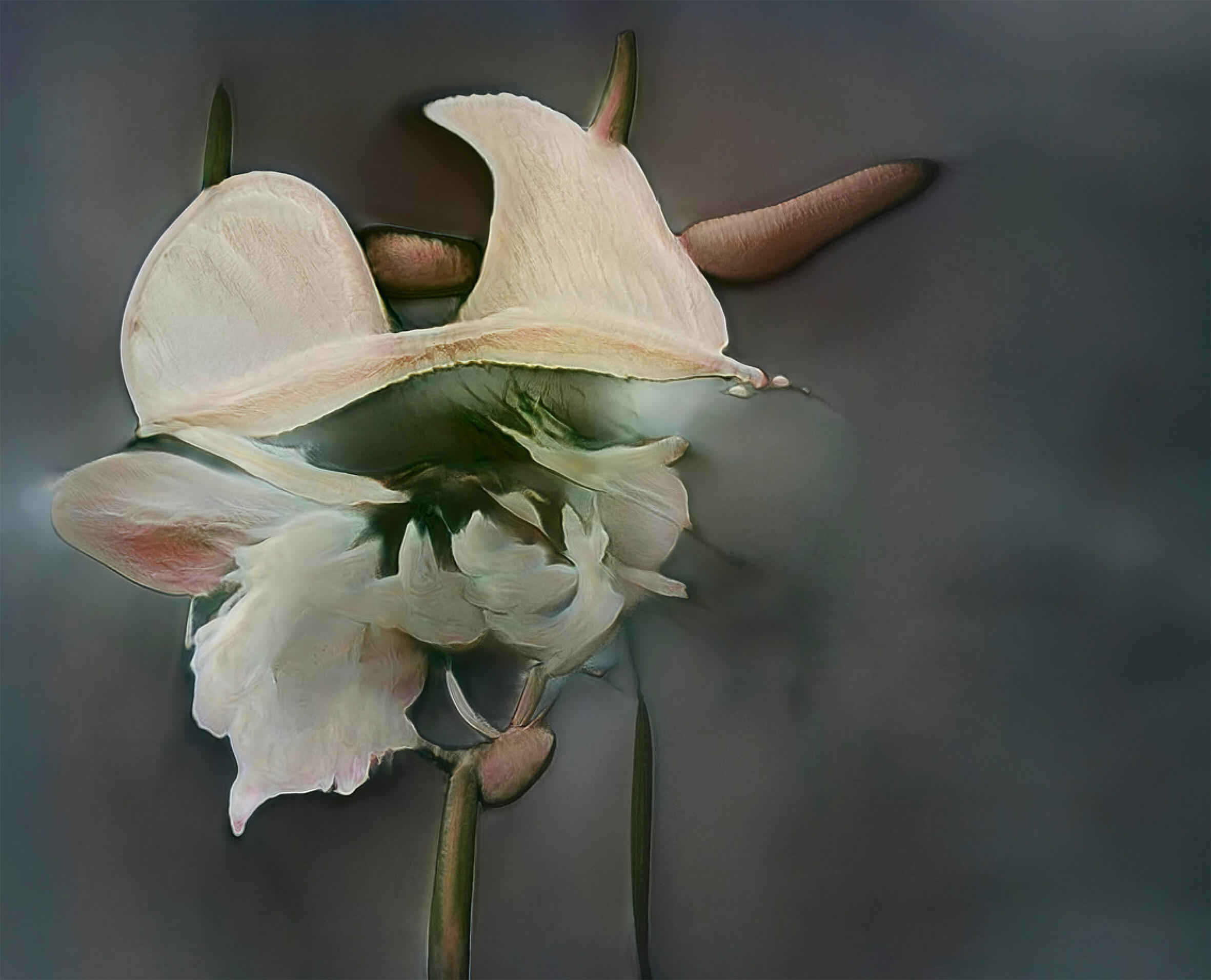 I uploaded only my own pictures—decades of flowers I've shot for Guerlain, Chanel, Lancôme—so it's ethically sourced, not harvesting other photographers' work. You feed it your archive and ask it to find links between images. It generates options. You choose what you like and feed those back in, training the model through your own choices. What I found charming was that it's not perfect, not realistic. It doesn't look like a flower you can pick.