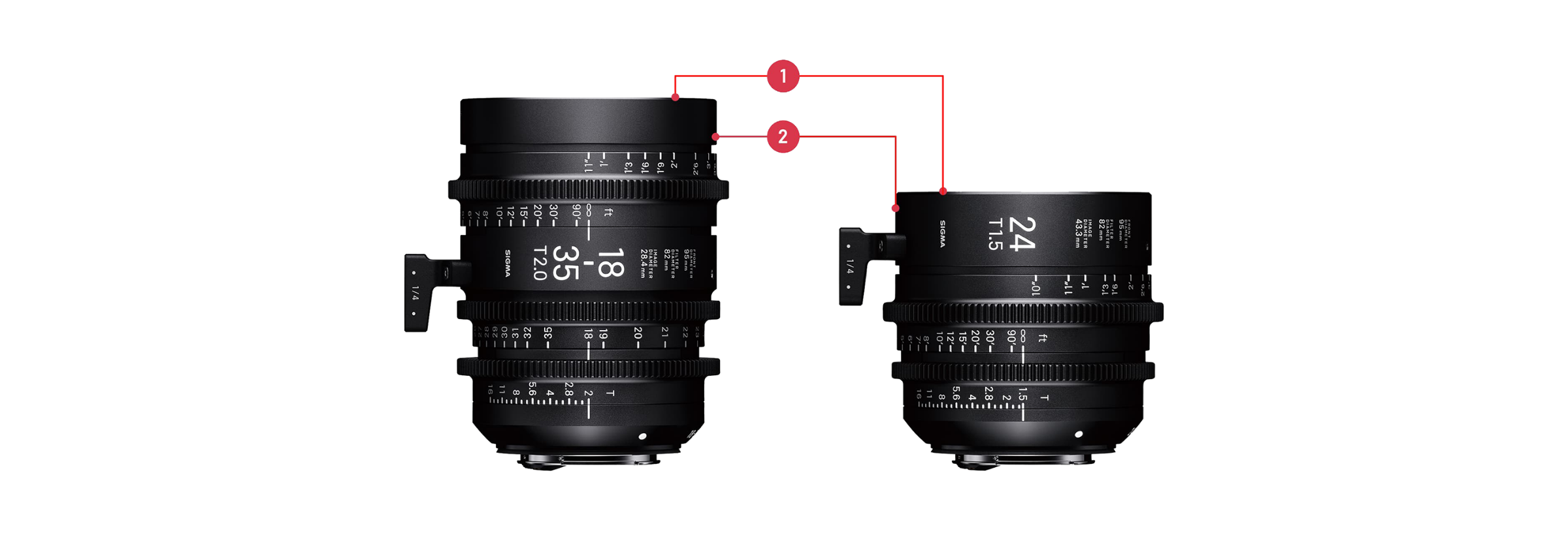 The front diameter is 95mm, similar to that of other cine lenses and compatible with matte boxes. Compared to lenses in the same class, Sigma’s cine lenses are more lightweight and compact.