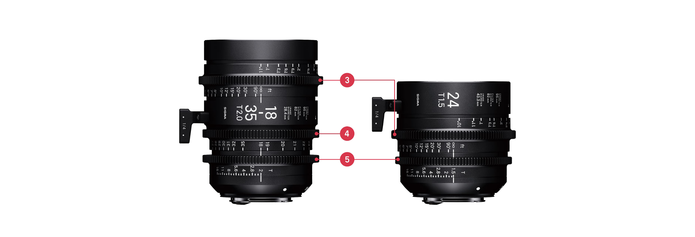 At 180°, the rotational angle of the focus ring is more than double that of a still camera lens, making possible extremely high-precision focusing. Sigma has also optimized the cam for cine lenses for even easier long distance focusing. -