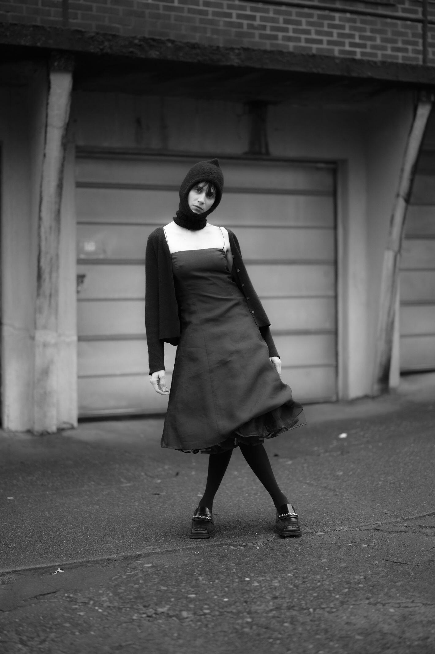 I shot with two subjects (Iona Catherine & Kaya Noteboom) as a way to capture individual talents, but also combine them in the frame to play with foreground, background, and the visually pleasing result of these features when shooting at a wide aperture. A mix of natural light and constantly controlled lighting allowed me to explore both situations within the same environmental parameters. Iona Catherine explored a styling concept & art direction, matched with backdrops and production design responding sometimes directly to the garment and its tones and patterns as a way to create a matching environment, which also contrasts with subjects when shot wide open.