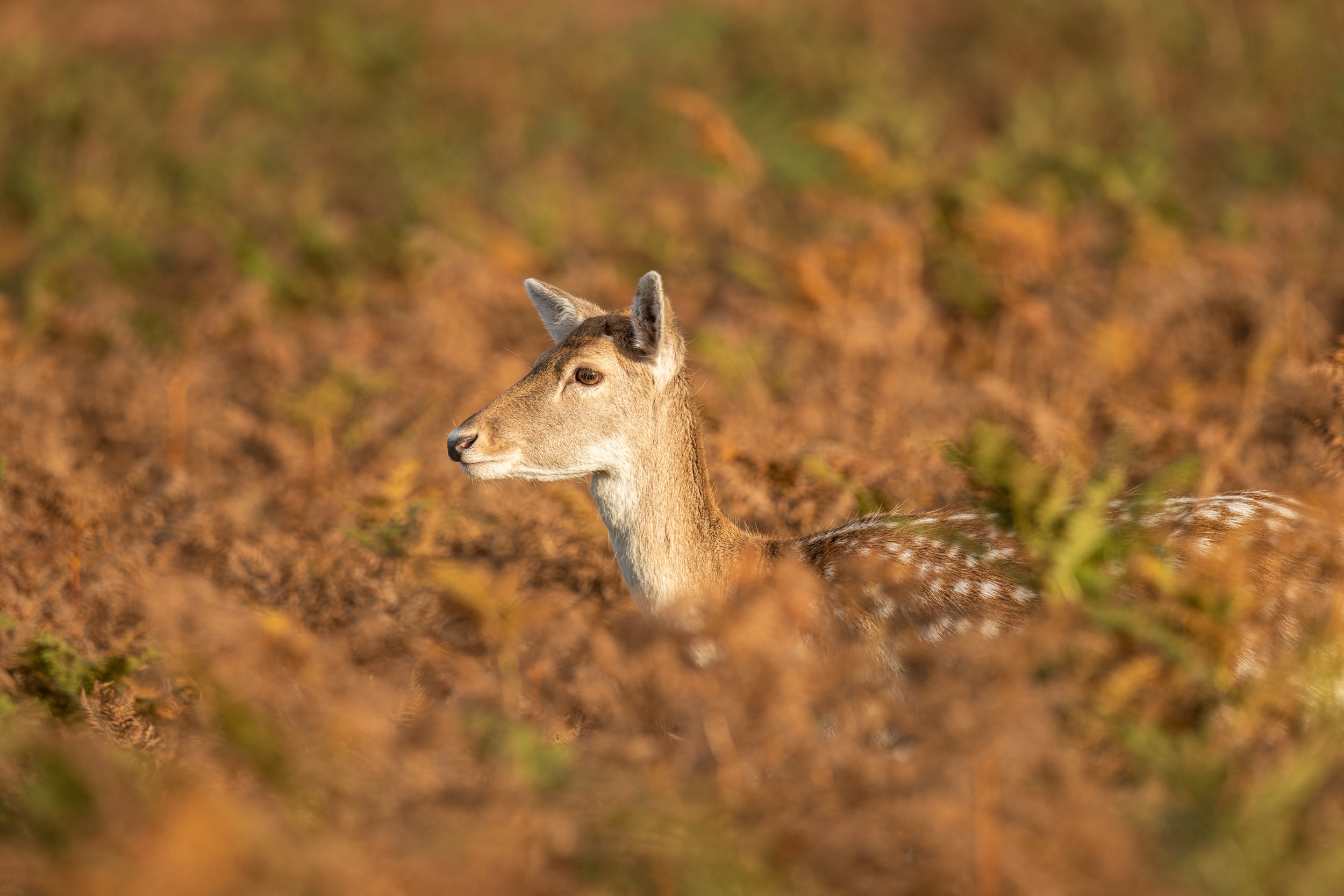 On a different day, in beautiful afternoon light, I wandered around to test the 60-600mm capabilities on deer. As the sun started to dip toward the horizon, creating a blaze of late autumnal colour among the ferns, I shot handheld even into the last remnants of light, knowing the very impressive Optical Stabilizer would help me get pinsharp images.