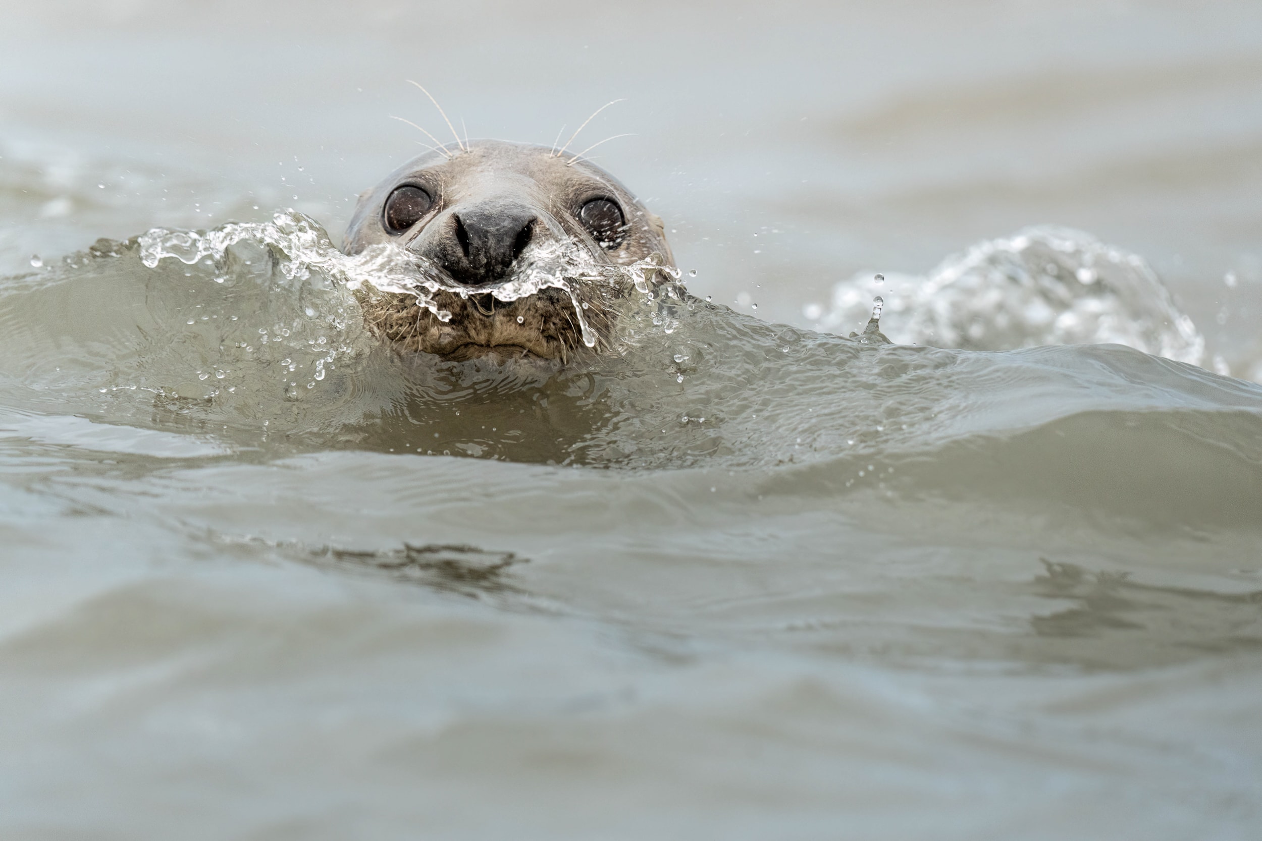 Later the same day I clambered onto a boat to see the view from the opposite direction. Choppy conditions made accurate focusing tricky, and the 'now you see me, now you don't' antics of the seals in the water meant I was twisting and turning my position constantly. I was also grateful the lens was very manageable as I leaned over the side of the boat, trying to shoot from as low to the water as possible!