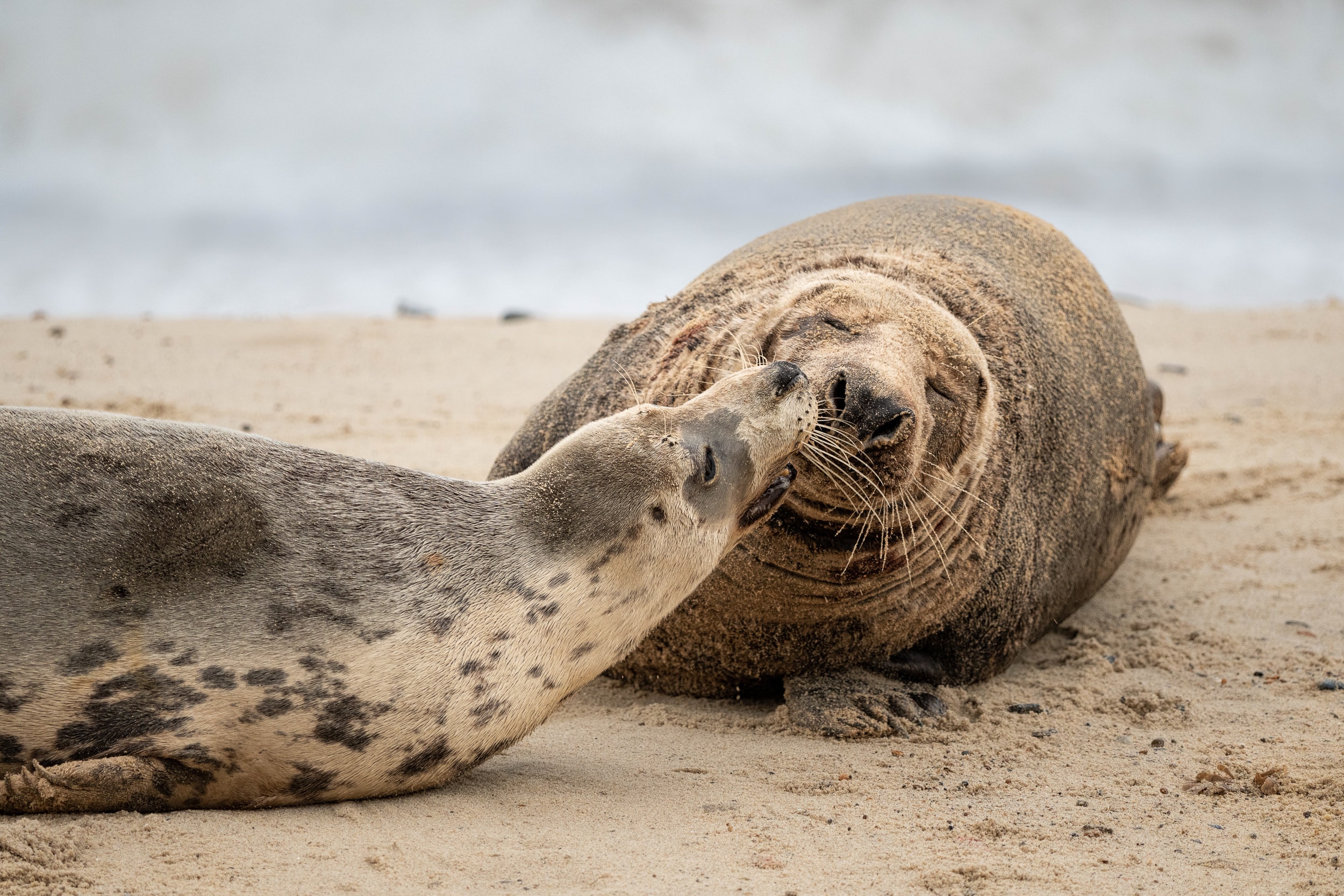 As the morning transitioned from black to pale blue, and finally a flat grey, I quietly headed into the dunes and looked down on a beach littered with females, and a few pups. I found myself a spot as low as it was possible to be but still raised from the beach so I could be totally hidden and avoid disturbing them.