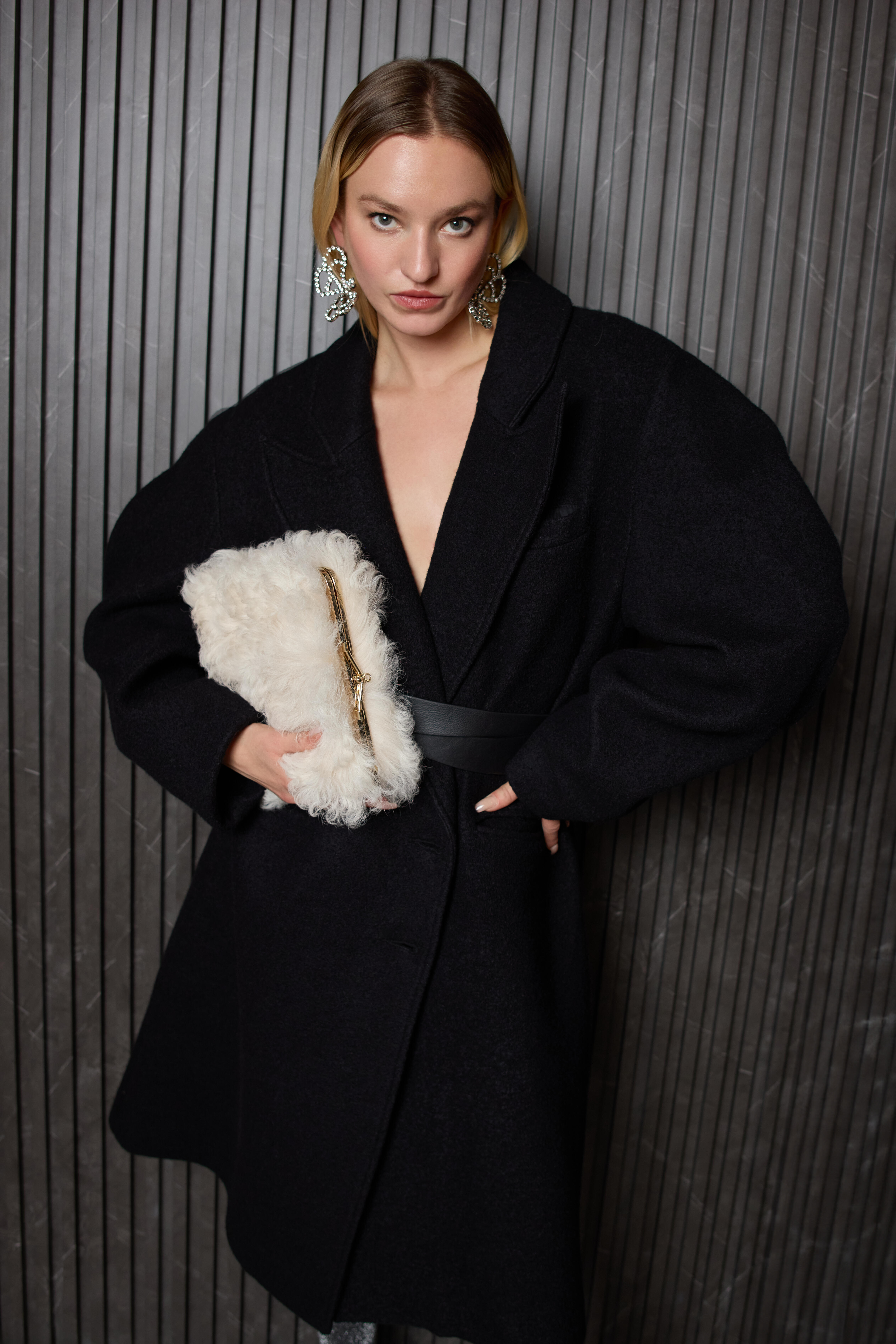 Unlike film, still photography lacks the benefit of dialogue or music to set the tone, so the location and clothes take on an even greater role in storytelling. To help convey this story, I collaborated with some dear friends. Our model Joan embodies the modern woman – complex, confident, sensual. She is both elegant and rebellious, a captivating enigma, much like the women of today. Styled by Sasha, an extraordinary fashion stylist, Joan’s looks draw inspiration from Fall/Winter 2024 trends – a fusion of Ferragamo, Jil Sander and my eternal dream client, YSL. Additionally, I chose Miraki Life Studio in Toronto’s west end as our location because it’s hard industrial textures and artistic vibe create a stark contrast to the wardrobe. I wanted to take viewers back to the nostalgia of the loud, larger than life, 1980’s New York/ Studio 54 culture.
