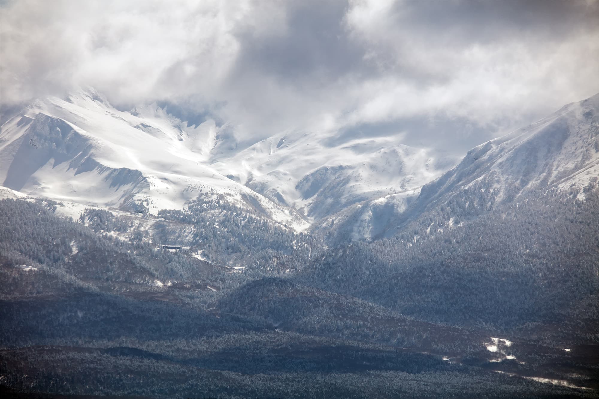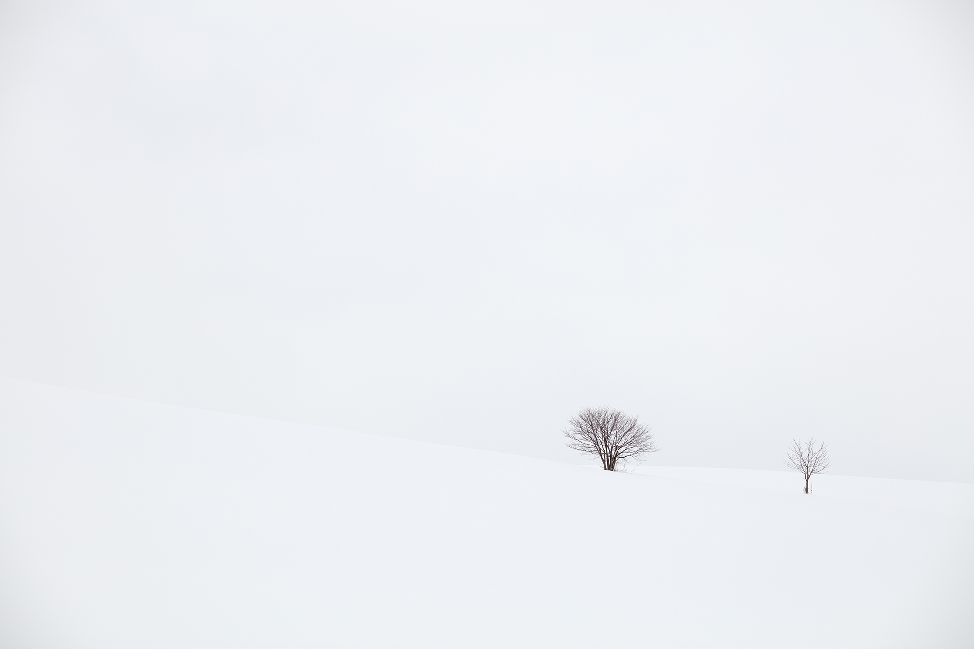 Just like a paint brush, sunlight shining through a break in the clouds lightens the ridge lines of the gentle hill covered by the snow. This scene didn’t last for more than three minutes. It’s true that we usually shoot landscapes using a tripod, but one scene doesn’t last for a long time and I mostly use my time looking for better shooting opportunities. So, I find the OS (Optical Stabilizer) quite helpful. I took advantage of the vignetting to avoid the image to look flat.