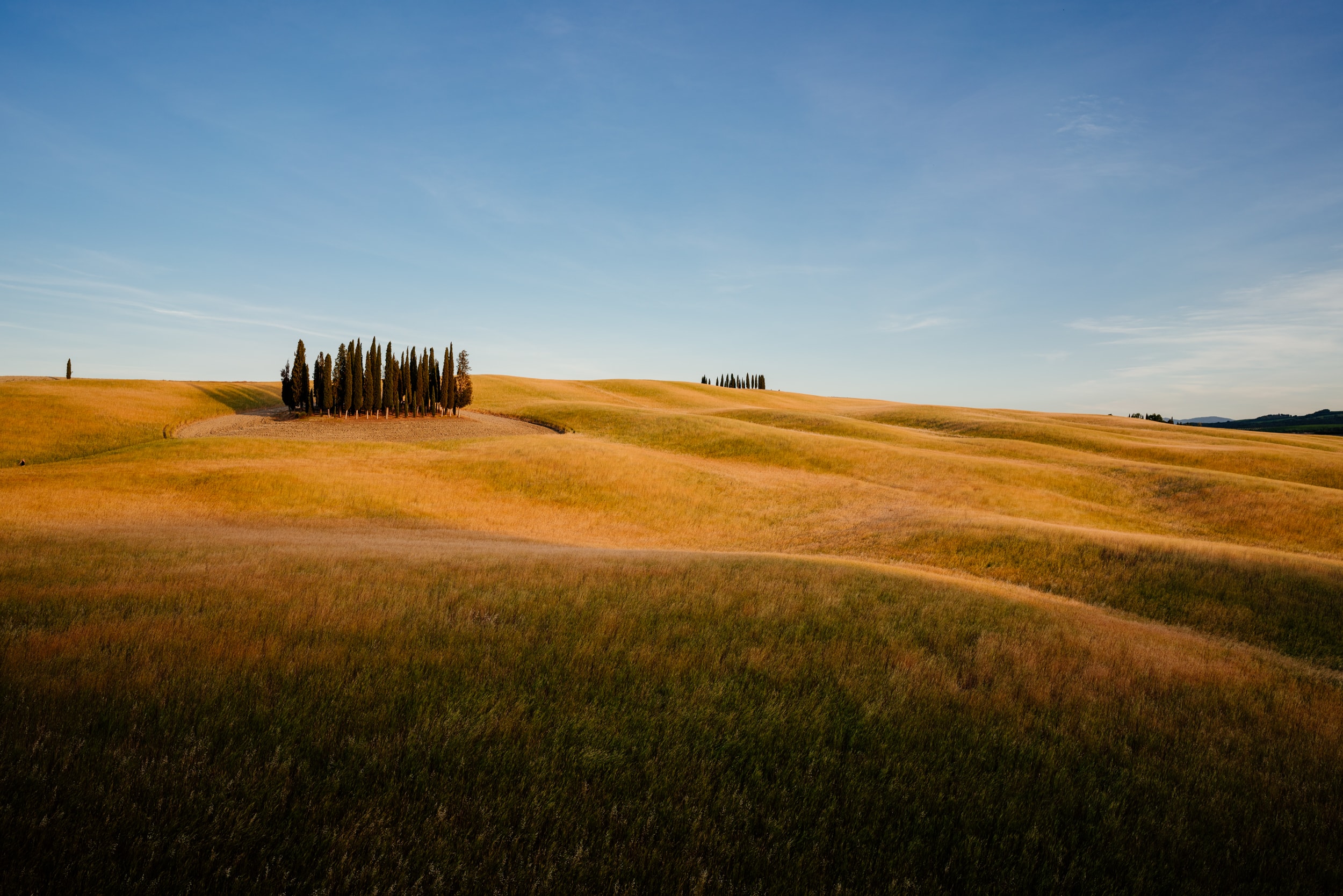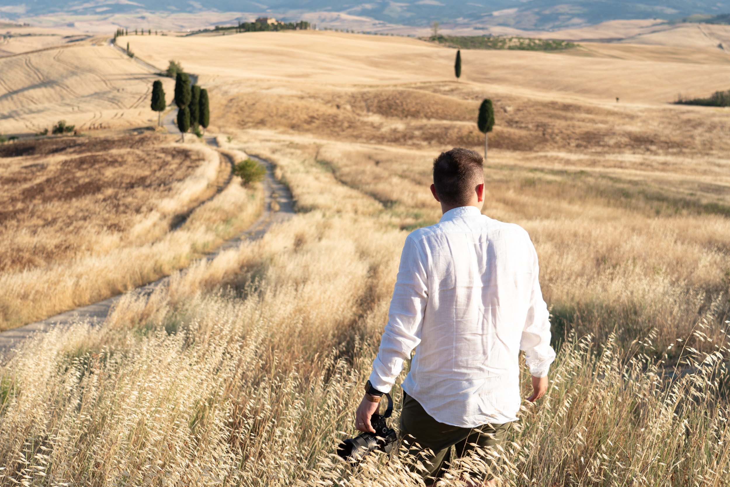 I love wandering aimlessly in the fields and rolling hills of Tuscany burned by the sun. Feeling the yellow golden stems at sunset, the warm blue sky.