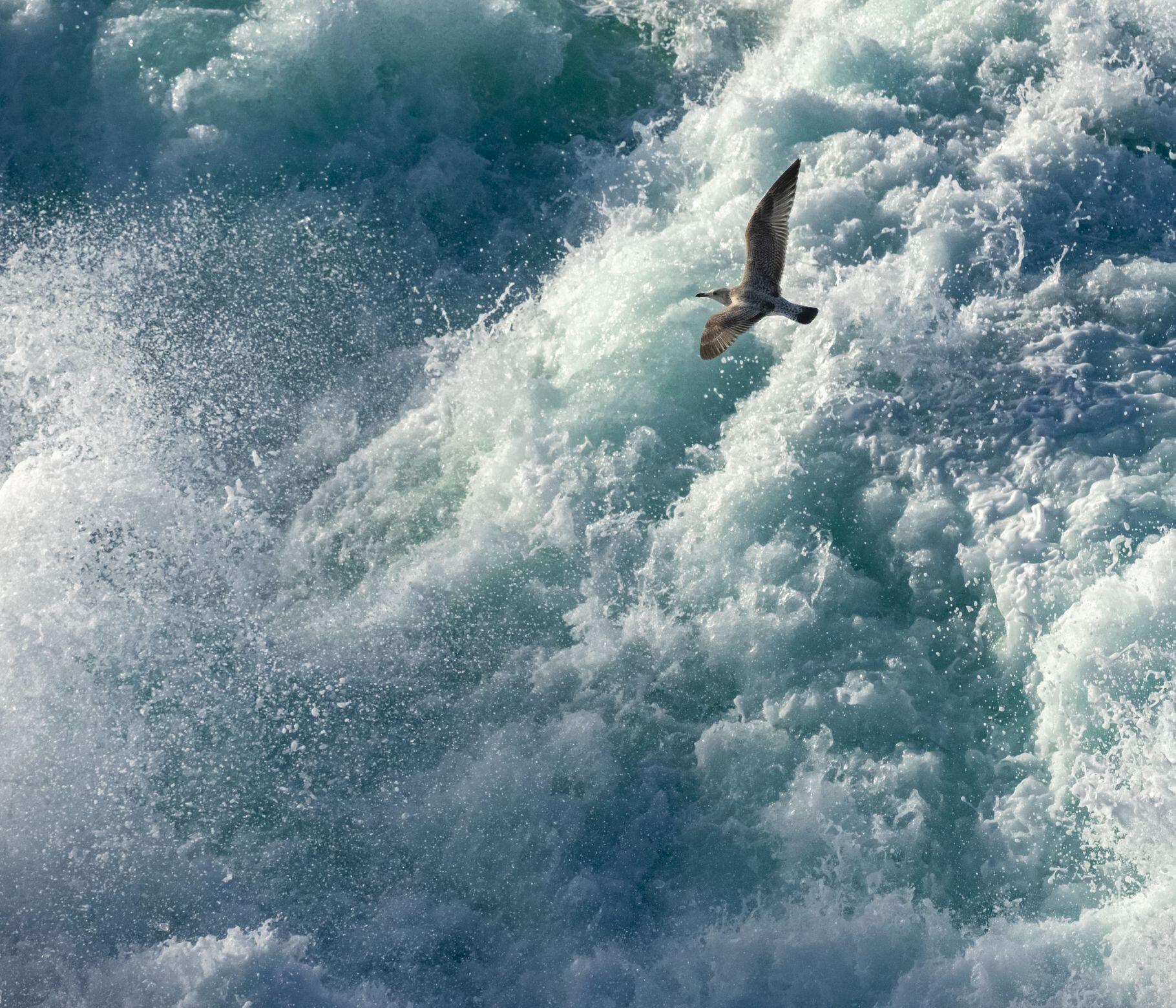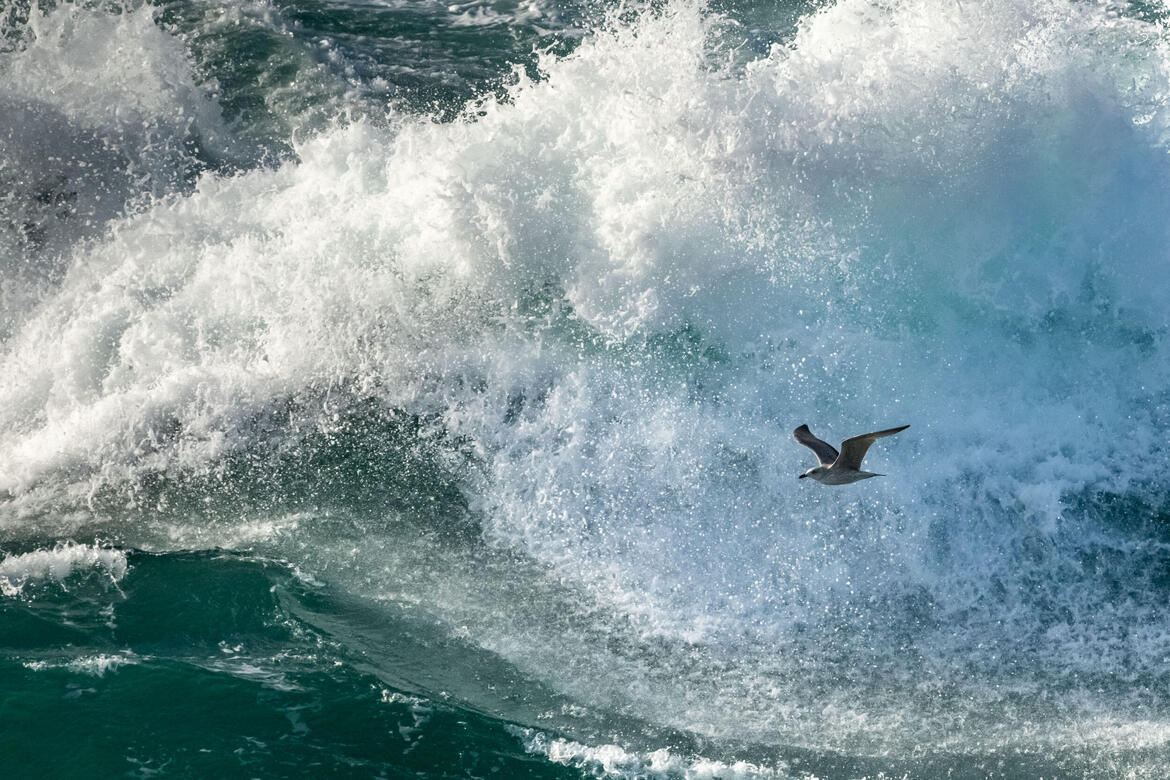 For this series of images, which I began more than ten years ago, two very ephemeral movements must come together: the flight of a bird with an uncertain trajectory and the explosion of a wave. Perseverance is essential for this type of image. Several times I have spent entire days in the storm waiting for a bird to pass by at the right moment and photographed nothing. This can be frustrating, but I think it's necessary for a photographer to push back their limits.