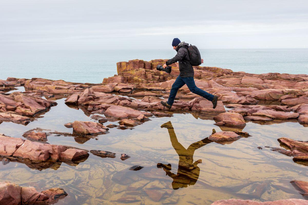 Time passes and the tide reverses. The waves then change direction and I decide to leave the point to reach a small pebble beach where the plovers like to come and play with the waves at ebb tide. I approach slowly so as not to disturb them, and keep a safe distance. I lie down on the pebbles at ground level and begin to follow their rapid movement. The lower the tide goes, the closer they get to the edge of the sea and the waves. Sometimes, they get too close and are surprised by the sudden burst of a wave. It was this moment that I had come to capture. It all happens in an instant, it's an extremely fleeting moment. The bird wanders very quickly between the pebbles, then, when the sound of the wave becomes threatening, freezes and suddenly flies away before the explosion of the wave on the rocks. It's practically impossible to anticipate in which direction the bird will fly, which makes this type of image very difficult.