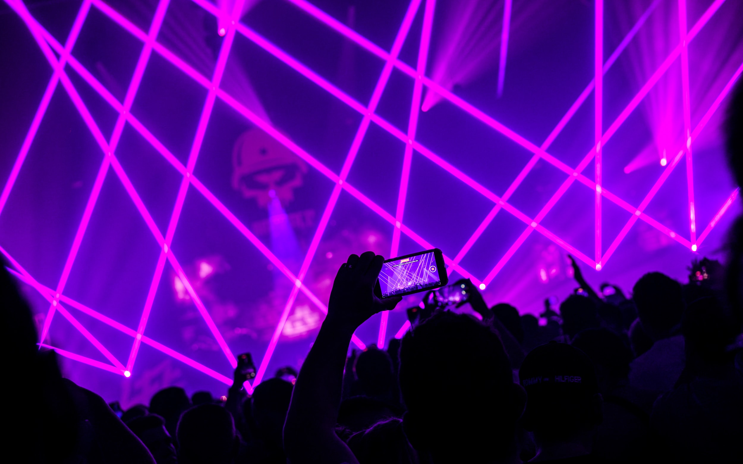 During an event, I always start out by shooting the images I need: the opening, a shot with fireworks, the crowd with their hands in the air, the close-up of the DJ... Once I have those images on my CF Express A card, I start playing around and experimenting with cool angles, different focal lengths, certain movements, that sort of stuff.
