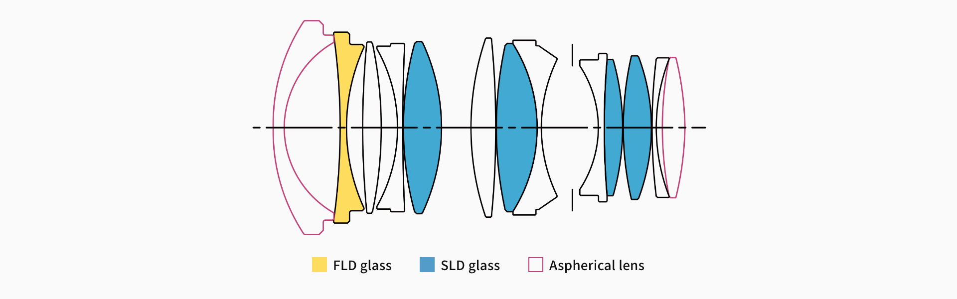 A large-aperture lens with minimal axial chromatic aberration and superb peripheral resolution.