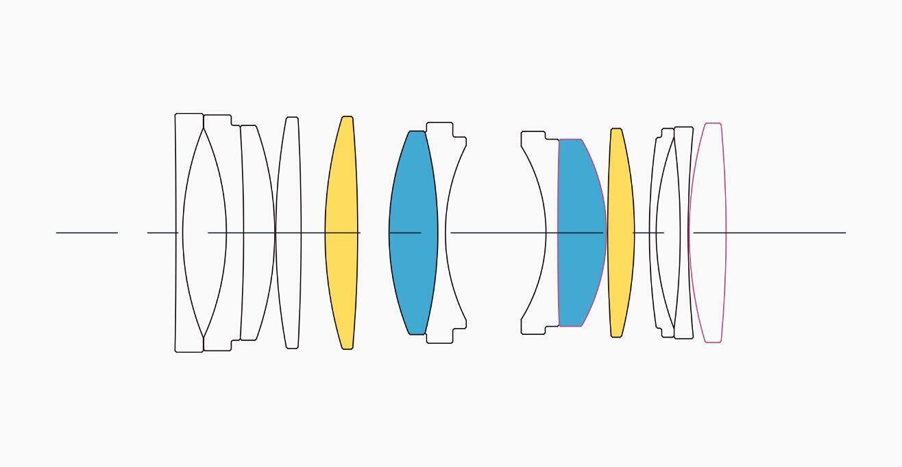 In order to realize top-level performance at every shooting distance, the lens features an extending, floating, two-group focus mechanism. This configuration minimizes aberration to produce optimal results at any focus distance. To minimize axial chromatic aberration, the optical system incorporates two FLD glass elements, two SLD glass elements, and one element with a high rate of anomalous partial dispersion and a high index of refraction. In addition, two aspherical lens elements help increase resolution at close shooting distances. This optical system makes possible a razor-sharp in-focus area contrasted with a bokeh area free of color streaking.