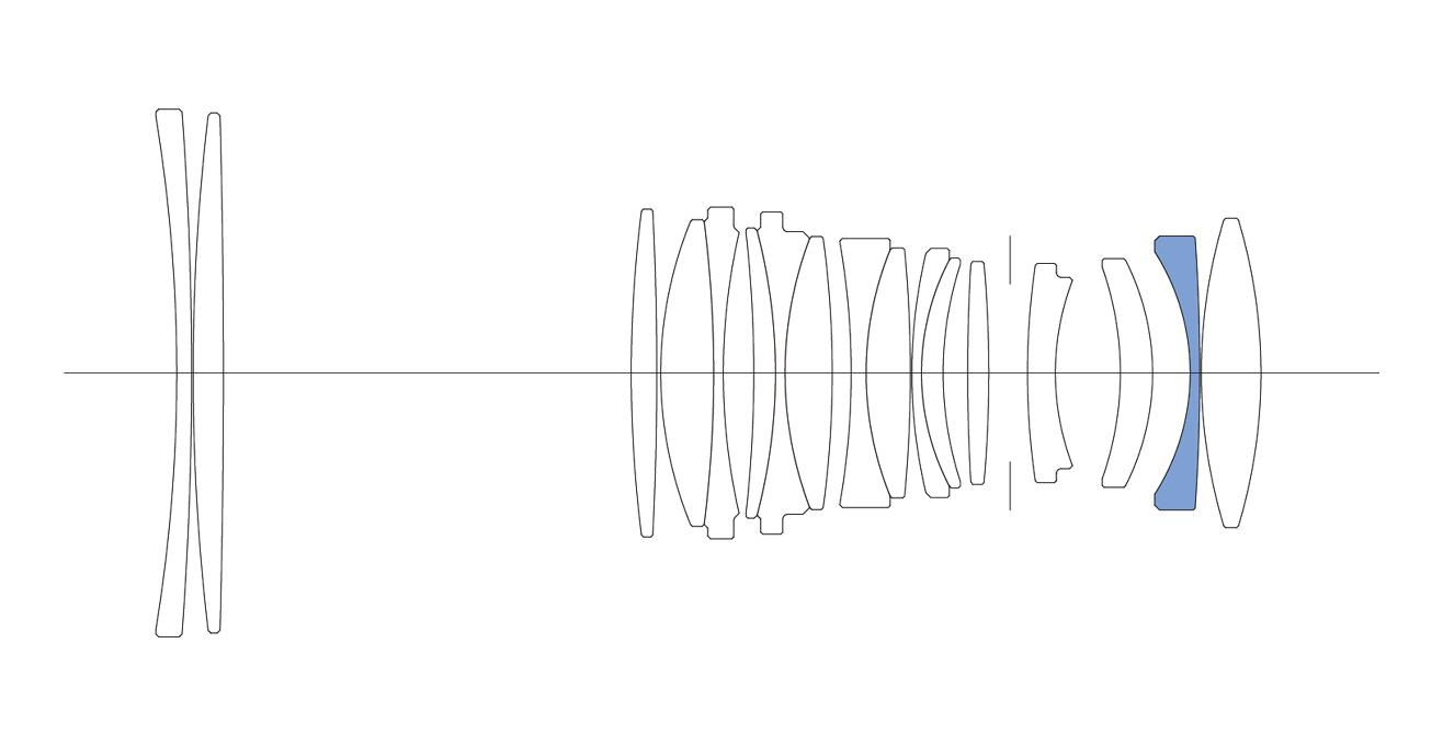 Lens construction: 17 elements in 12 groups, with 1 SLD lens