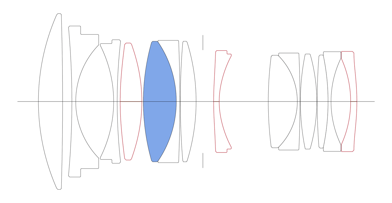 Lens construction: 14 elements in 11 groups (1 SLD and 3 aspherical lenses)