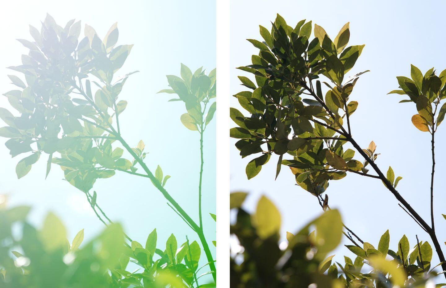 The foremost lens elements feature a water- and oil-repellent coating that allows water to be wiped away easily and prevents oil and fat from sticking to the surface, even in challenging shooting conditions. This coating also makes maintenance of the lens surface easier.Without coating