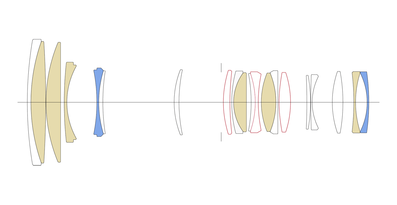 20 elements in 15 groups (6 FLD, 2 SLD, 3 aspherical elements)