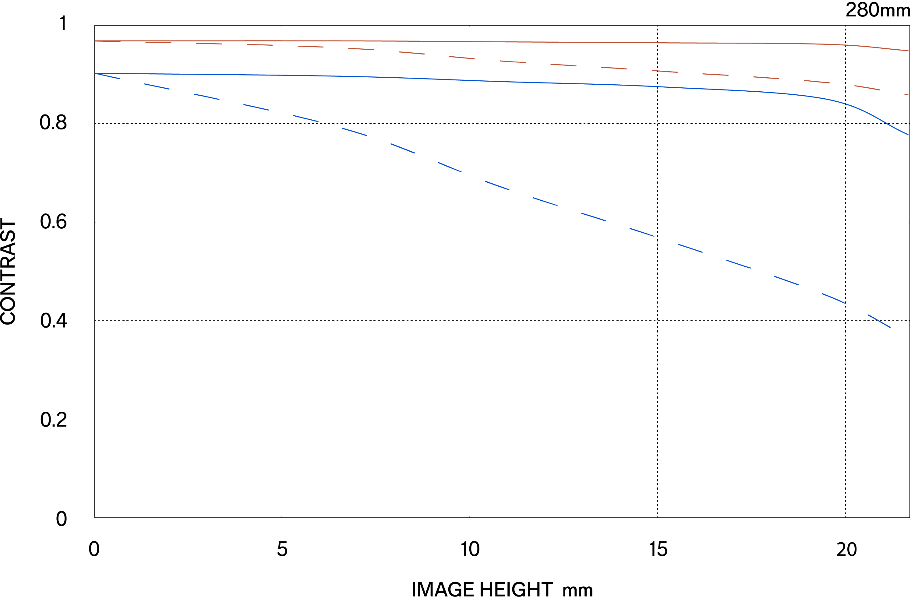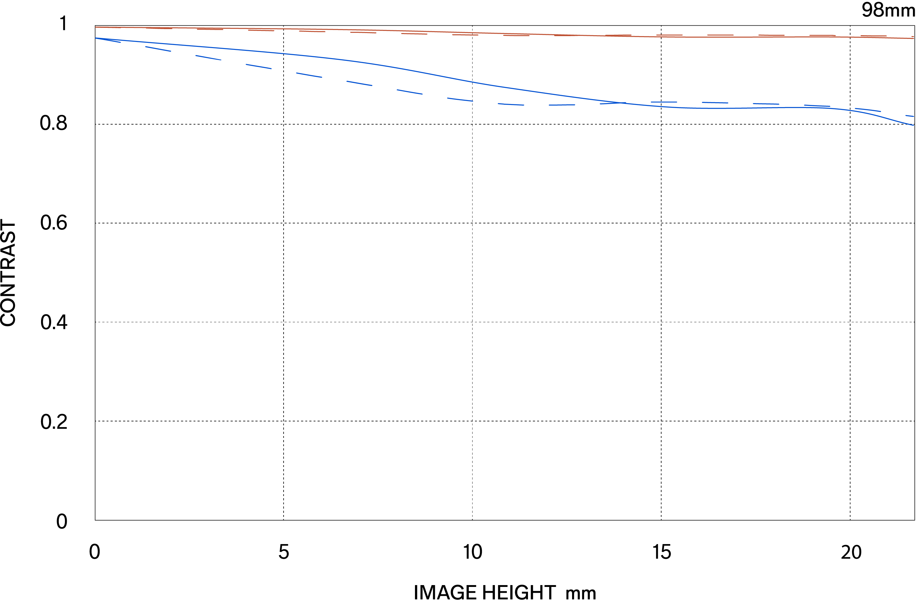 The lens has been designed to suppress focus breathing. The change in angle of view due to focus shift is minimized, creating a natural-looking focus shift when recording video.