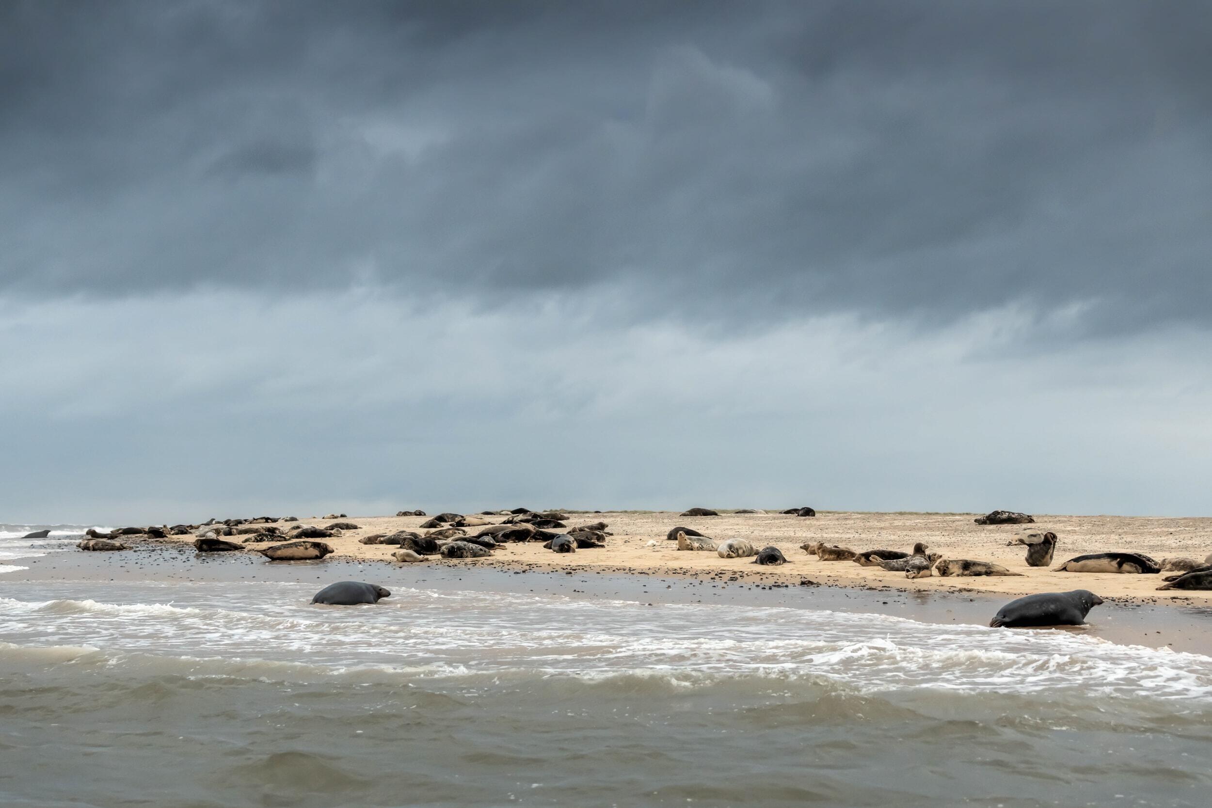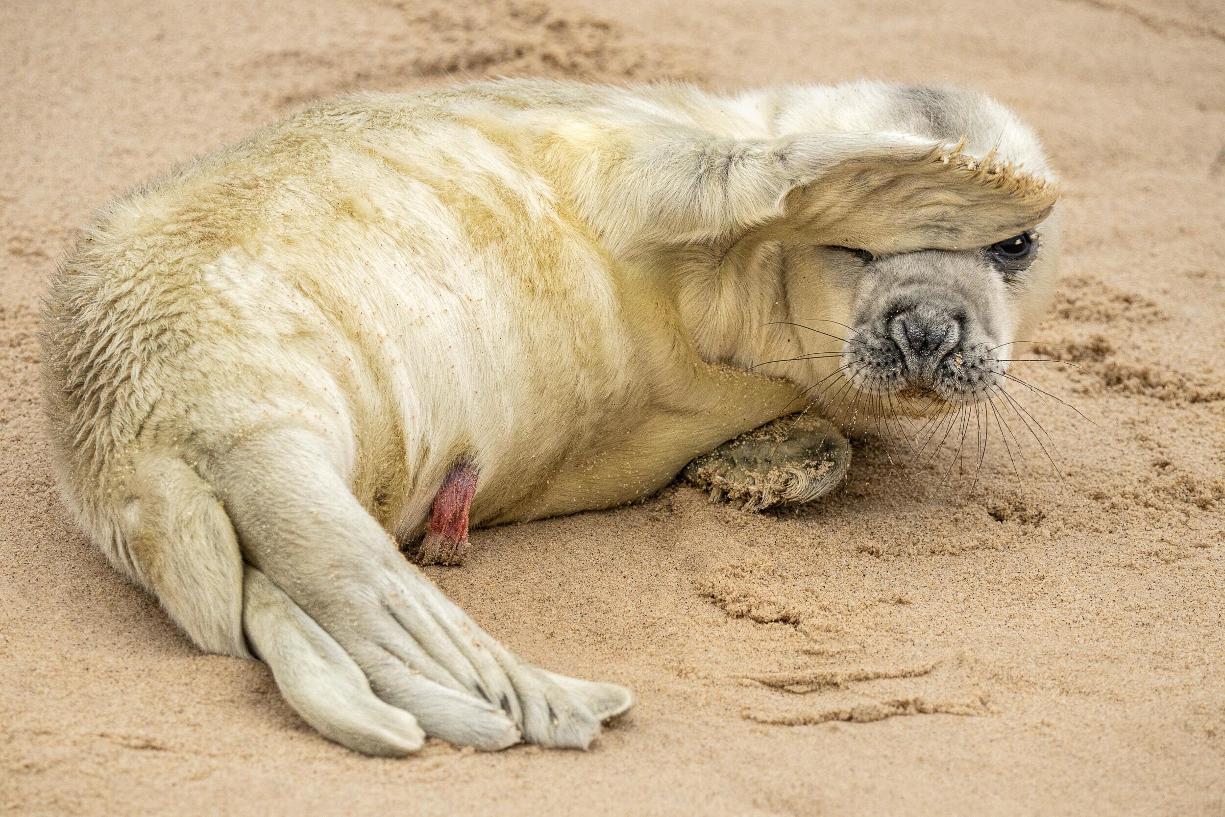 As the morning transitioned from black to pale blue, and finally a flat grey, I quietly headed into the dunes and looked down on a beach littered with females, and a few pups. I found myself a spot as low as it was possible to be but still raised from the beach so I could be totally hidden and avoid disturbing them.