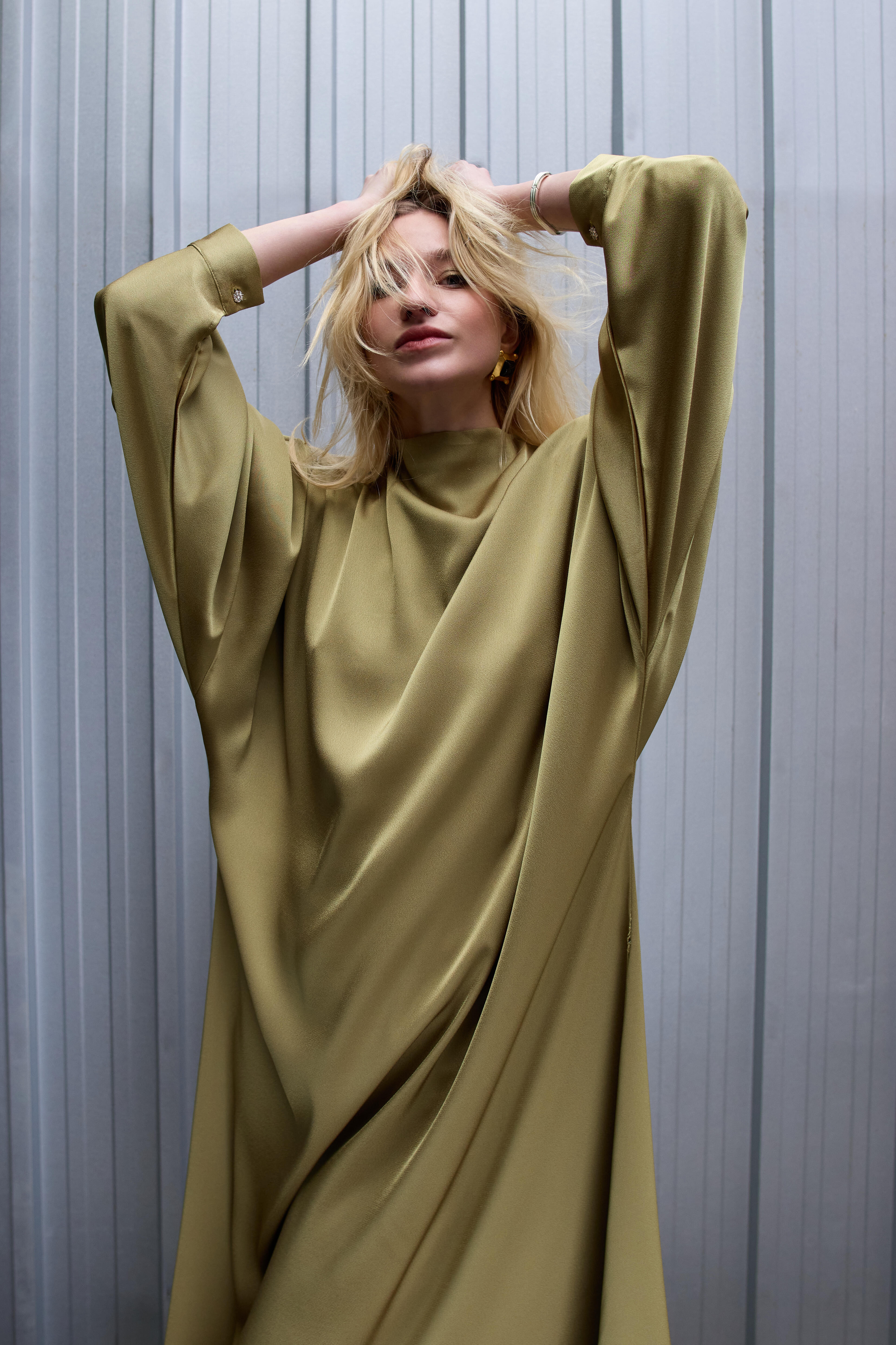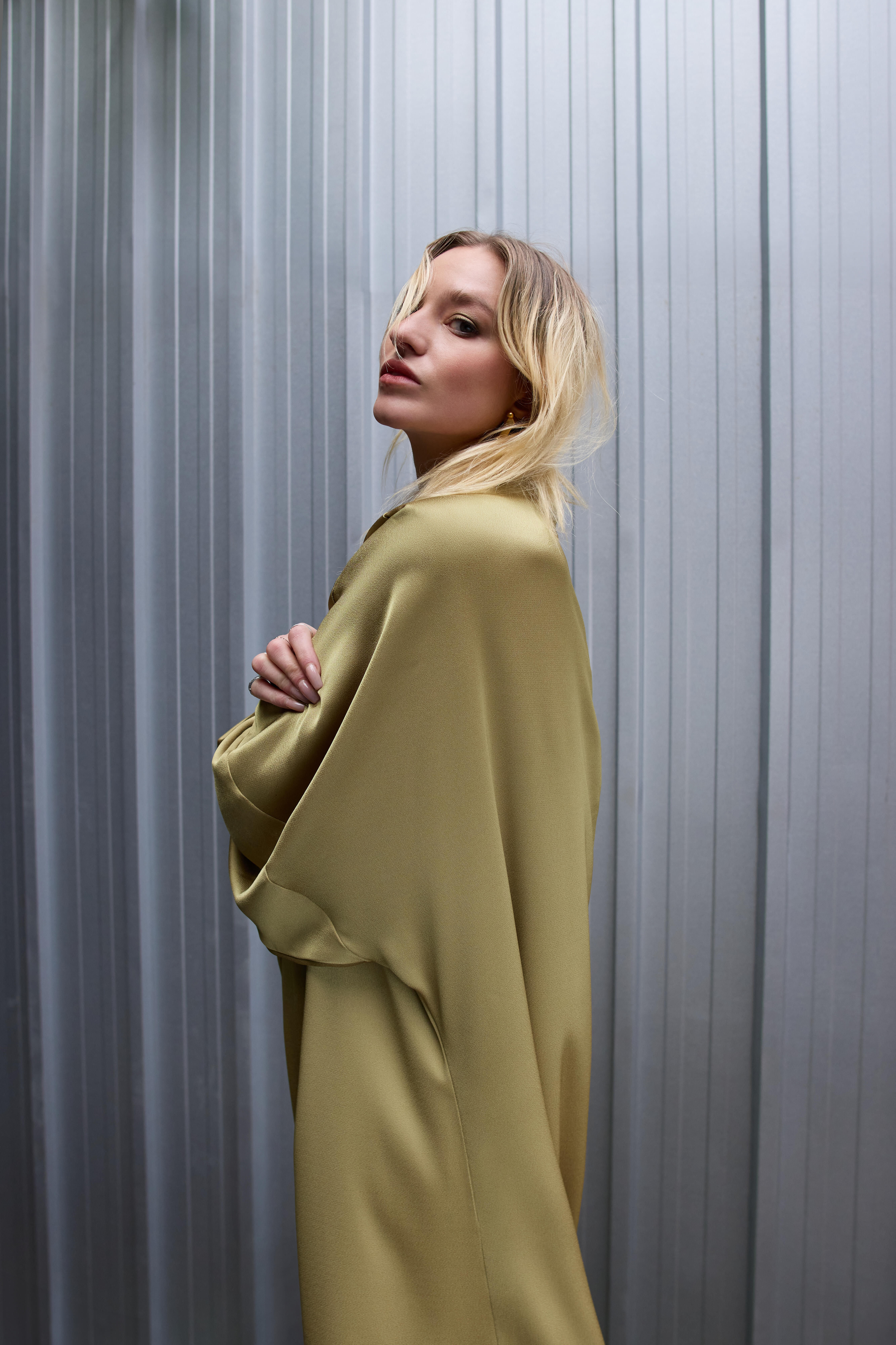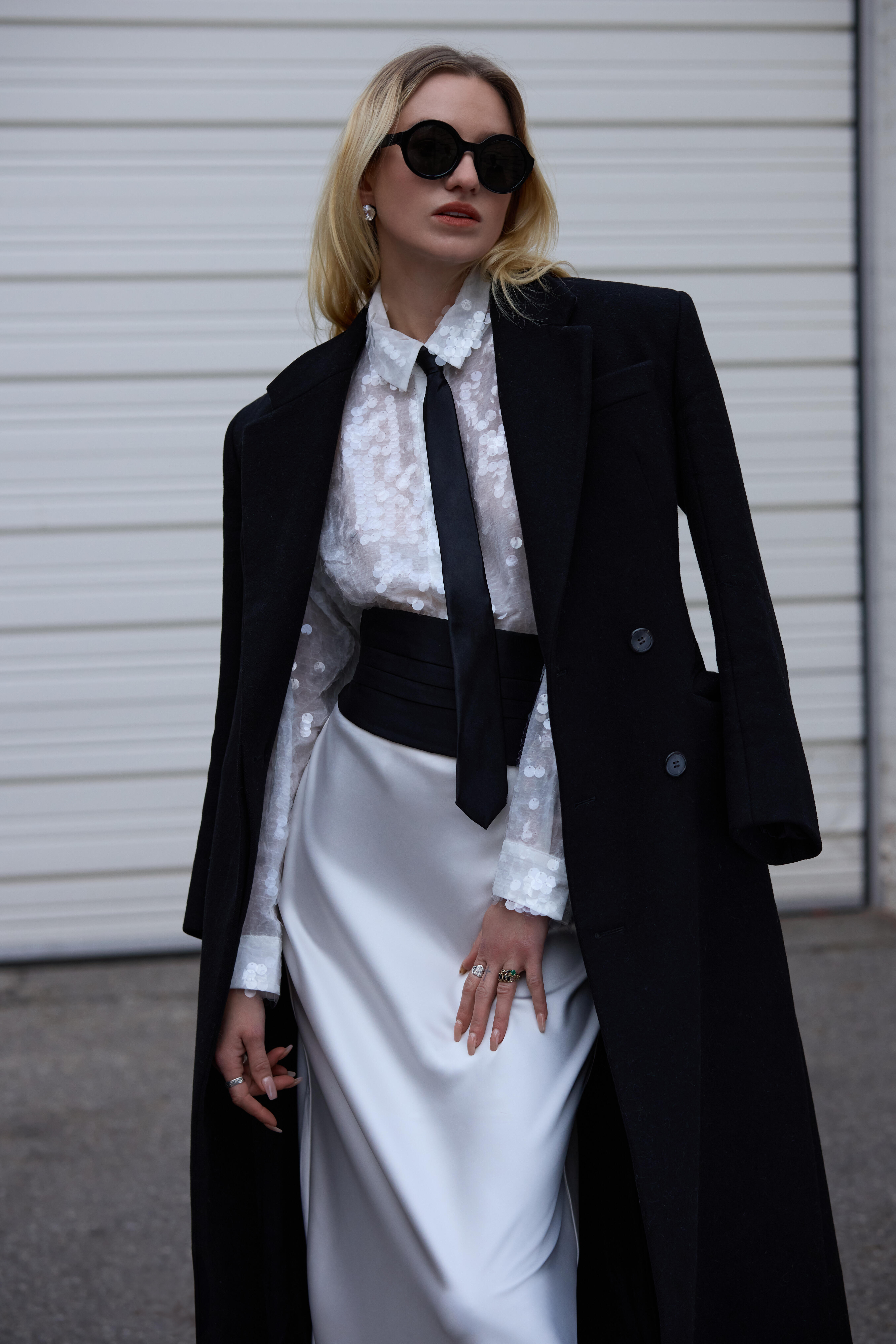 Unlike film, still photography lacks the benefit of dialogue or music to set the tone, so the location and clothes take on an even greater role in storytelling. To help convey this story, I collaborated with some dear friends. Our model Joan embodies the modern woman – complex, confident, sensual. She is both elegant and rebellious, a captivating enigma, much like the women of today. Styled by Sasha, an extraordinary fashion stylist, Joan’s looks draw inspiration from Fall/Winter 2024 trends – a fusion of Ferragamo, Jil Sander and my eternal dream client, YSL. Additionally, I chose Miraki Life Studio in Toronto’s west end as our location because it’s hard industrial textures and artistic vibe create a stark contrast to the wardrobe. I wanted to take viewers back to the nostalgia of the loud, larger than life, 1980’s New York/ Studio 54 culture.