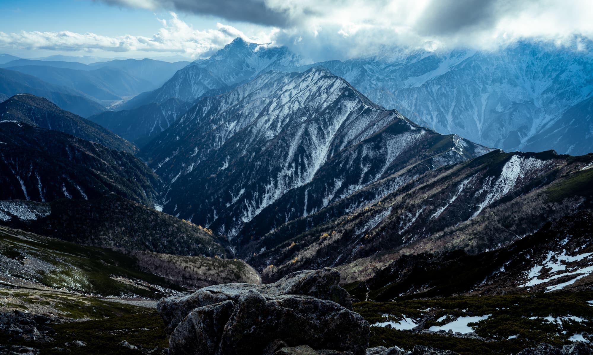 At an altitude of 2,800m I arrived at the ridge of the Northern Alps and I could look along the path that I would be tackling that day. Thanks to the wide angle-of-view of the 24mm lens, I was able to include the entirety of the mountain ridge in my shot from this position.