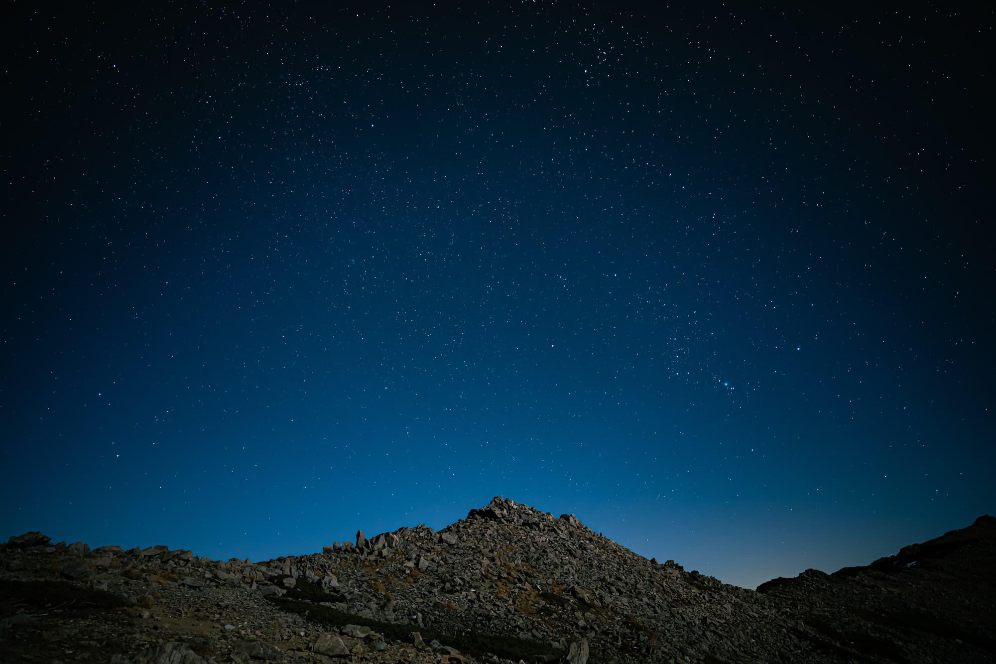 The sky was covered in a dense fog when I peeked out of my tent at 10pm. I was able to take a photograph of Mt. Yari as it stood illuminated by the moonlight.