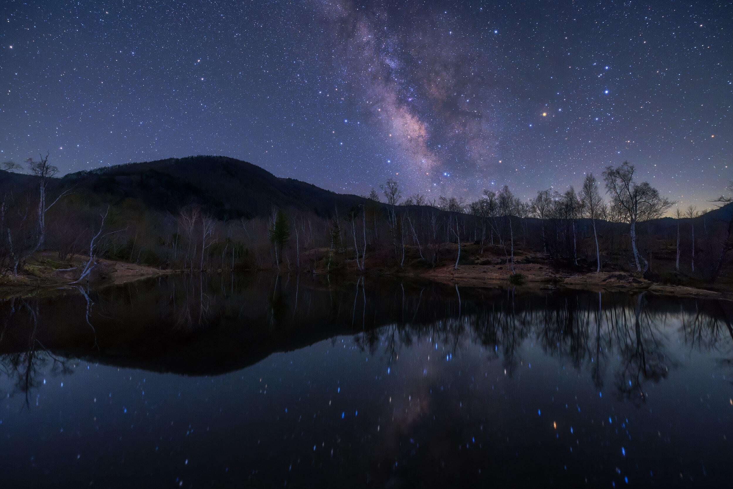 It is necessary to hold the shutter open for 10 to 20 seconds to capture the faint light of the night. Stars are constantly moving in relation to the ground, and it is not possible to extend the exposure time if we are to capture them as dots. Therefore, a bright lens is required, and this lens, the brightest 14mm lens available, lets in a lot of light with its F1.4 maxium aperture.