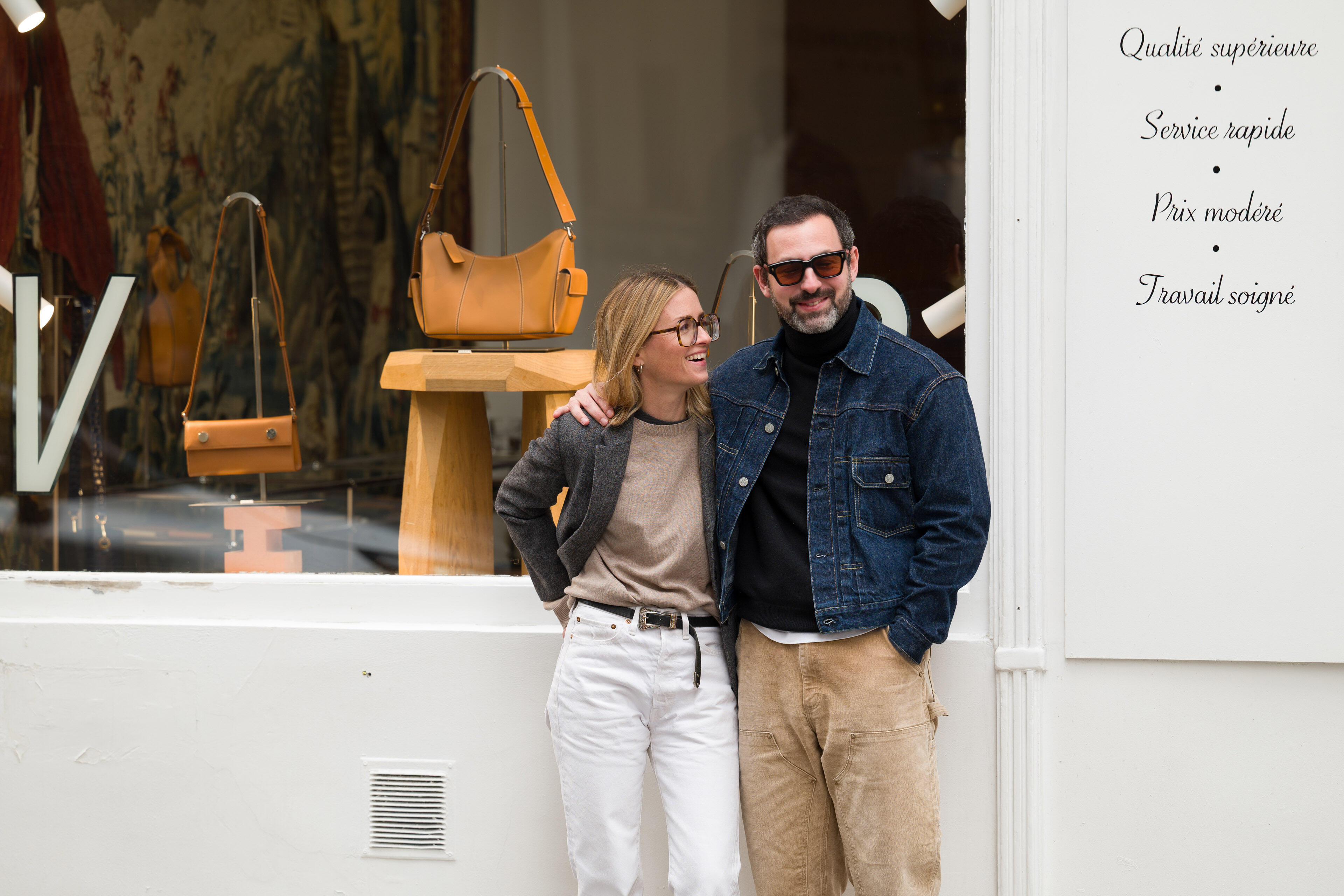 Thomas and Aurore, founders of RSVP, handmade leather bags in France