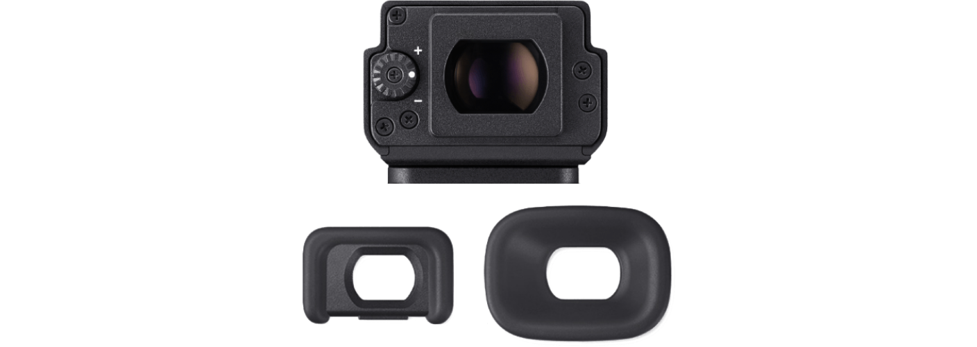 ファインダーの周囲が暗くケラれることなく全視野見渡せるアイポイントを21.0mmに設定。眼鏡をかけていても全体を見渡しやすく、高い視認性を保ちます。視度補正は-4.0~+3.0(dpt)の広い範囲で調整が可能です。また、付属のアイカップは2種類のサイズを用意。シーンやスタイルに合わせて選択ができ、被写体のディテールまでしっかり確認するために必要な見やすさと使いやすさを追求しています。 -
