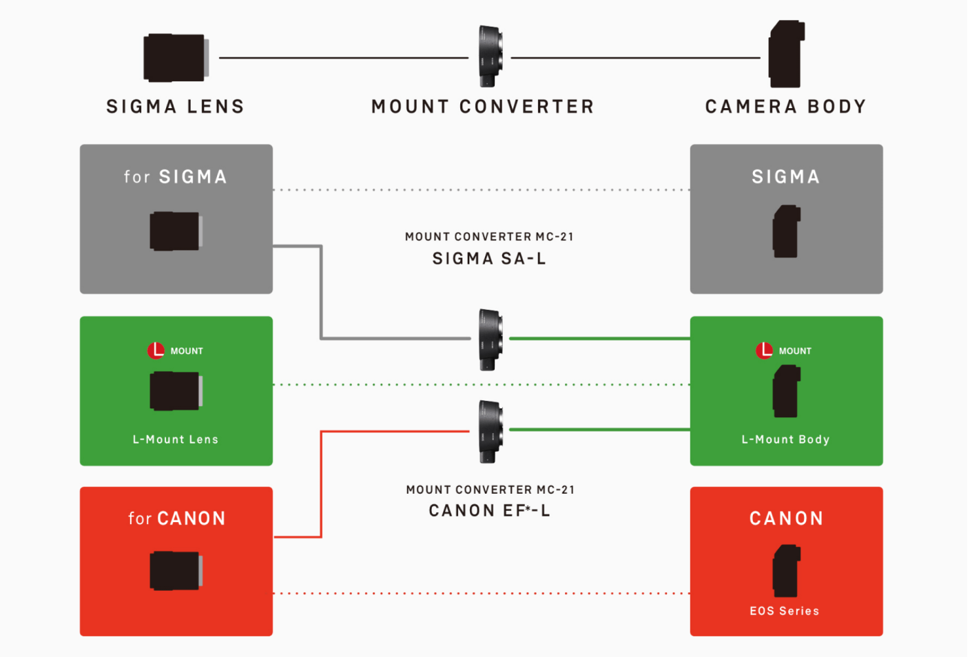 Sigma MOUNT CONVERTER MC-21は、Sigma SAマウント用交換レンズ、およびSigma製キヤノンEFマウント用交換レンズをLマウント採用のカメラボディで使用するためのコンバーターです。MC-21を装着することで、Lマウントカメラおよびレンズ選択の自由度を高め、Lマウントシステムの拡張性を大きく向上させます。 -
