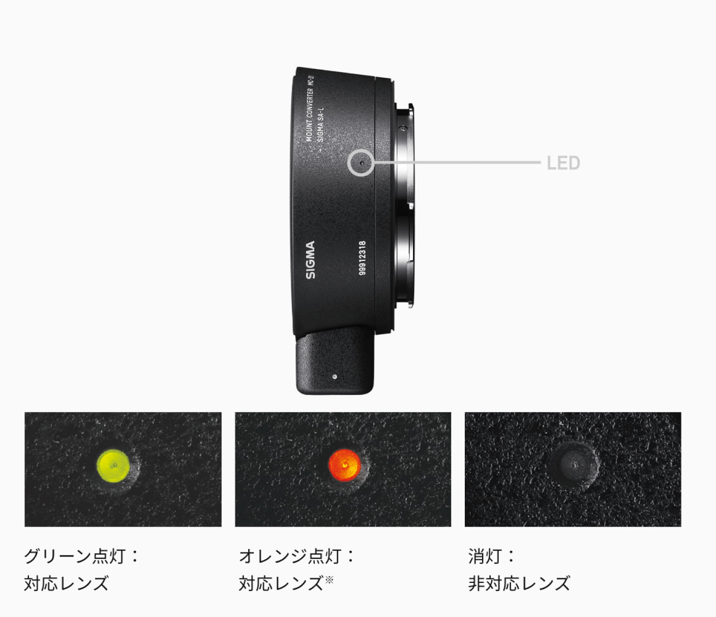 MC-21に内蔵のLEDの色と点灯の有無により、装着したレンズの対応・非対応の判別や、レンズファームウェアのアップデートが必要かどうかの判断が容易に行えます。