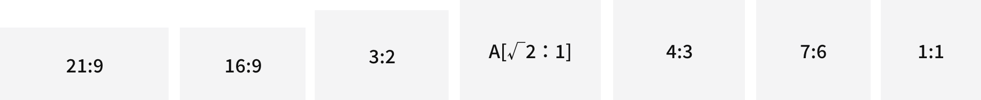 [21:9] , [16:9] , [3:2] , [A判(√2:1)] , [4:3] , [7:6] , [1:1]