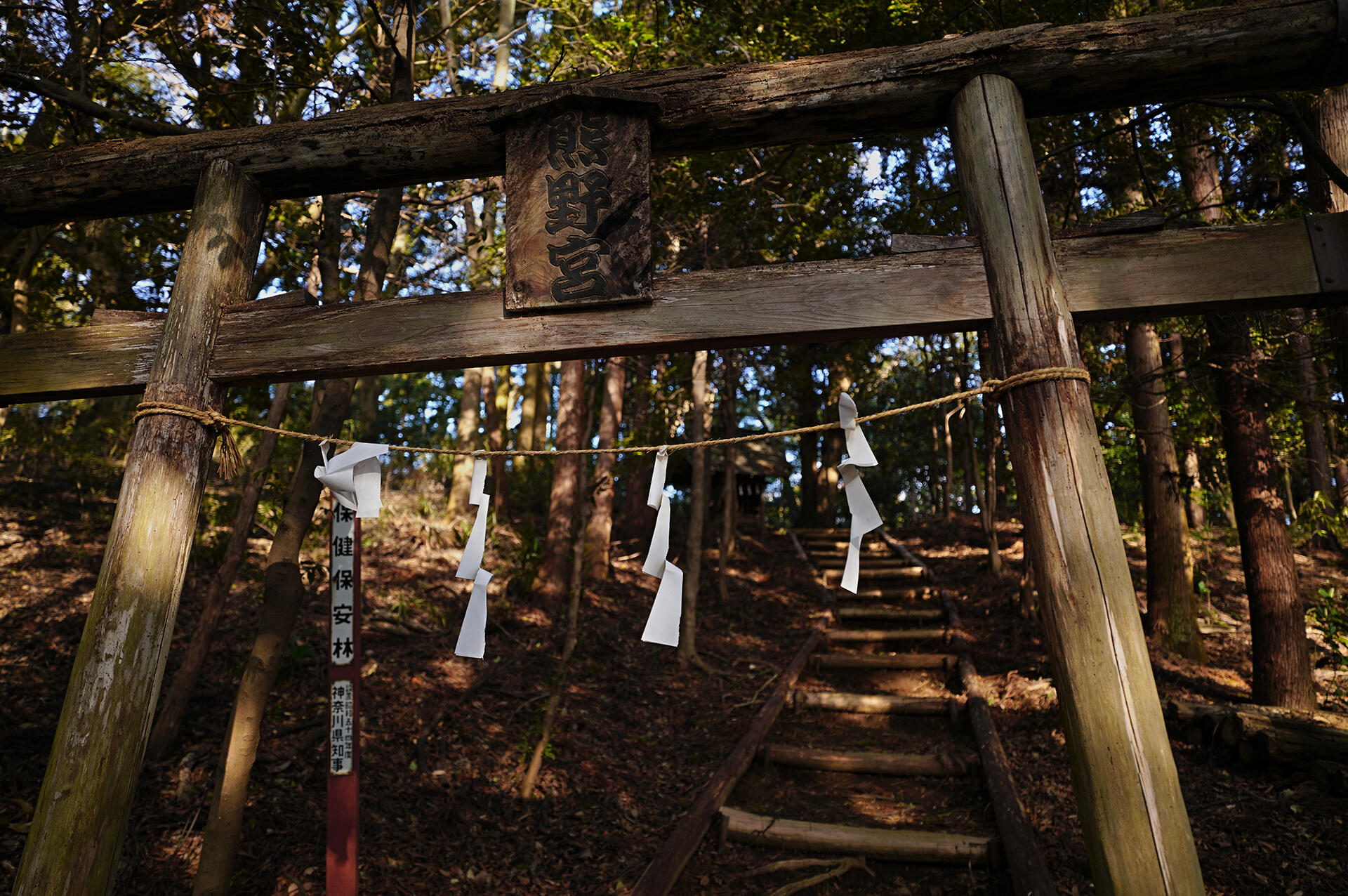「飯山白山森林公園駐車場」と「飯山ロウバイの丘」の間に鎮座する熊野神社。