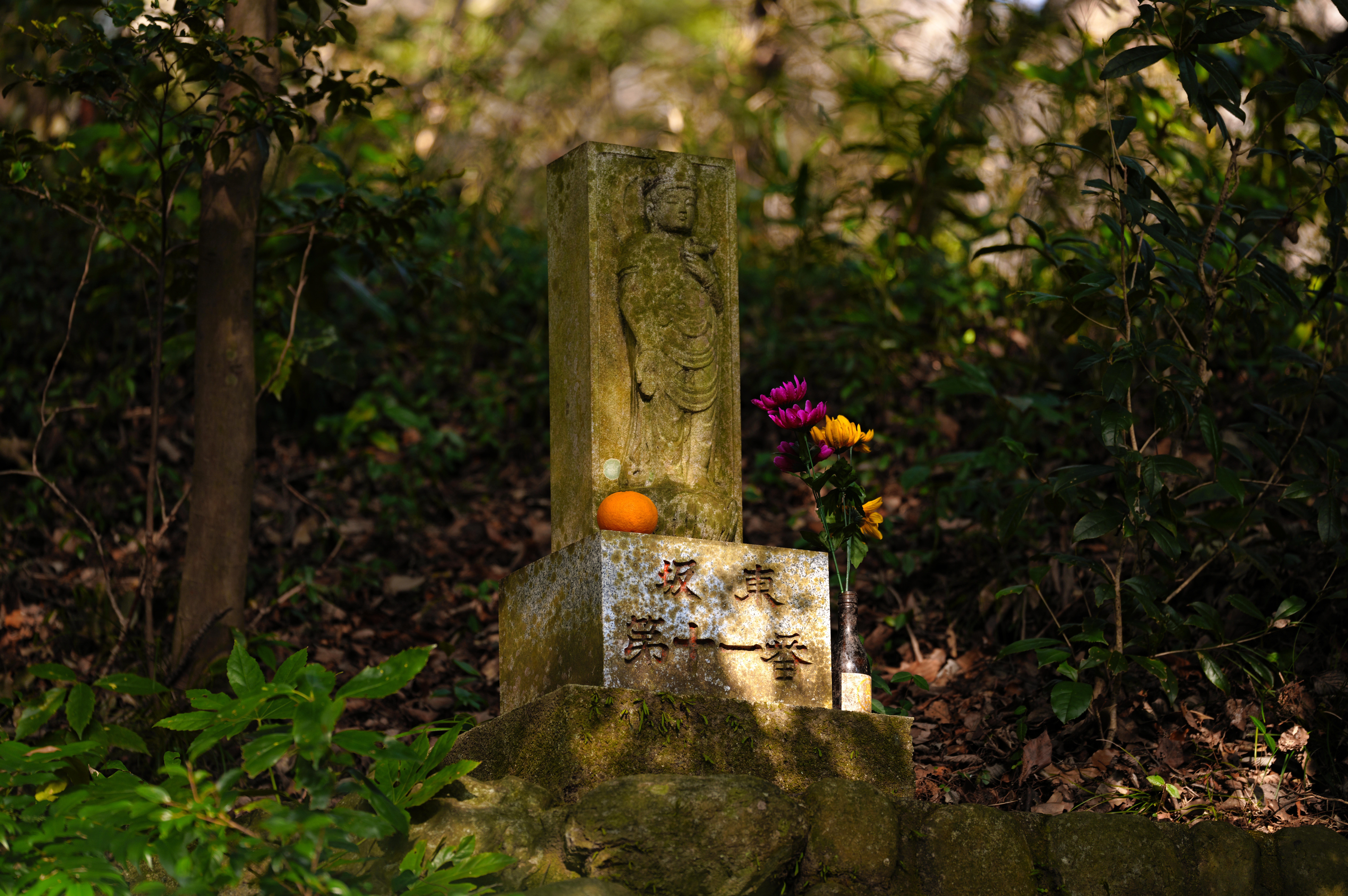 長谷寺の境内を通り抜けた本殿裏には幾つも観音様が祀られている。左へ行けば女坂。私は右の男坂から白山へ登った。