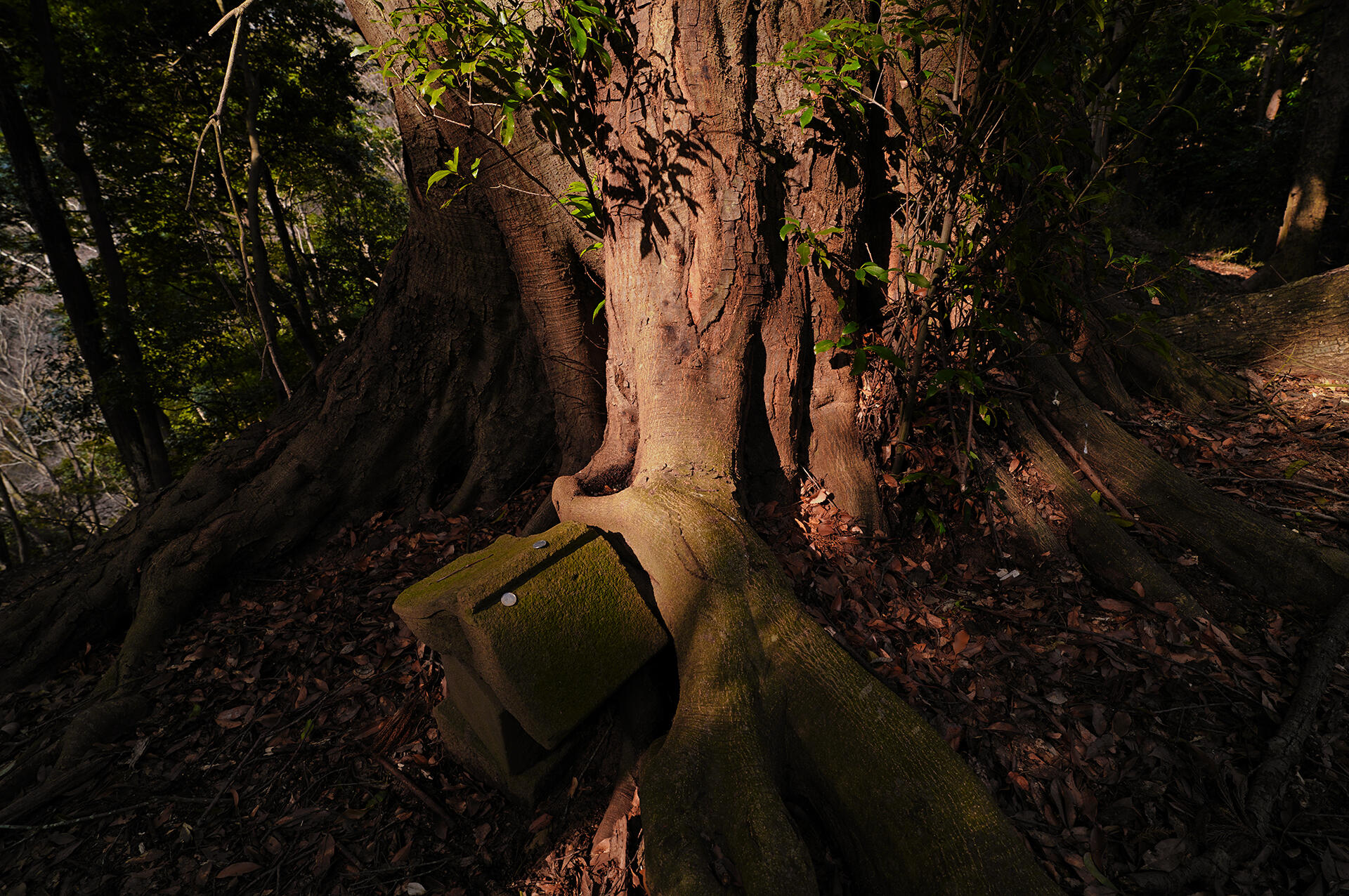 男坂を5分ほど登った地点にブナ科のウラジロガシという立派な大木が生息している。