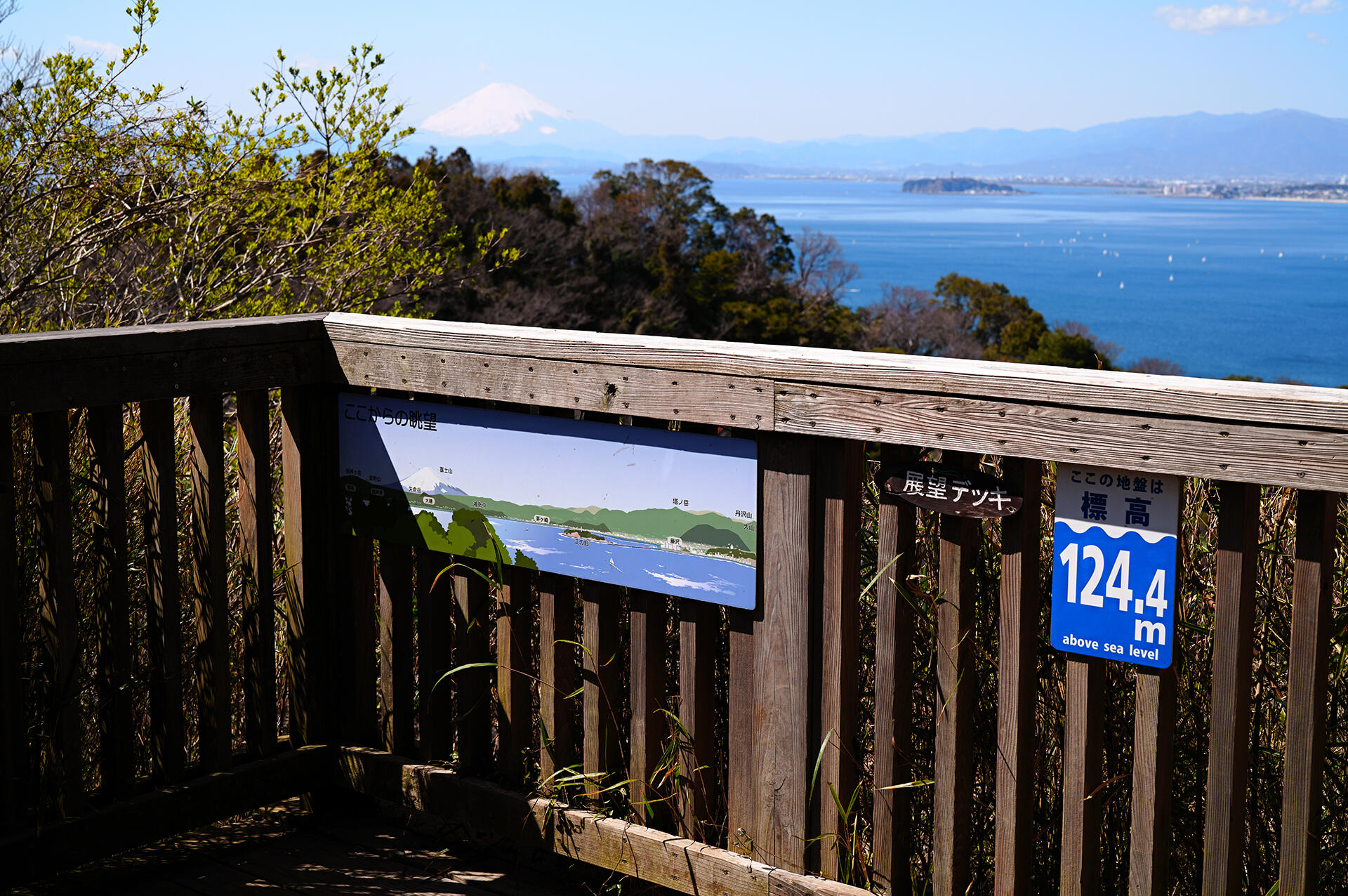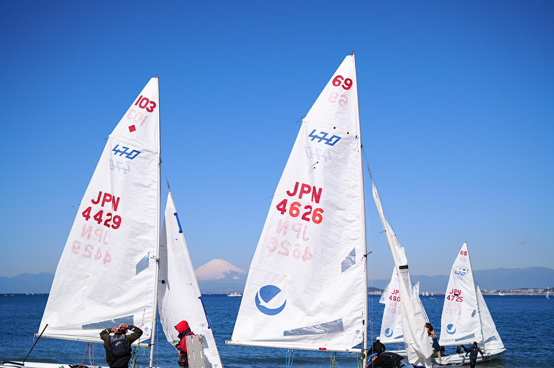 山頂付近まで直線距離で約77km先に位置する富士山が白い帆の間に見えた。1912年、慶應義塾の水泳部が伴走用のヨットを森戸沖で帆走させたことから、近代日本ヨット発祥の地と言われる葉山町。この日も幾つかの大学のヨット部が海へ出て行った。