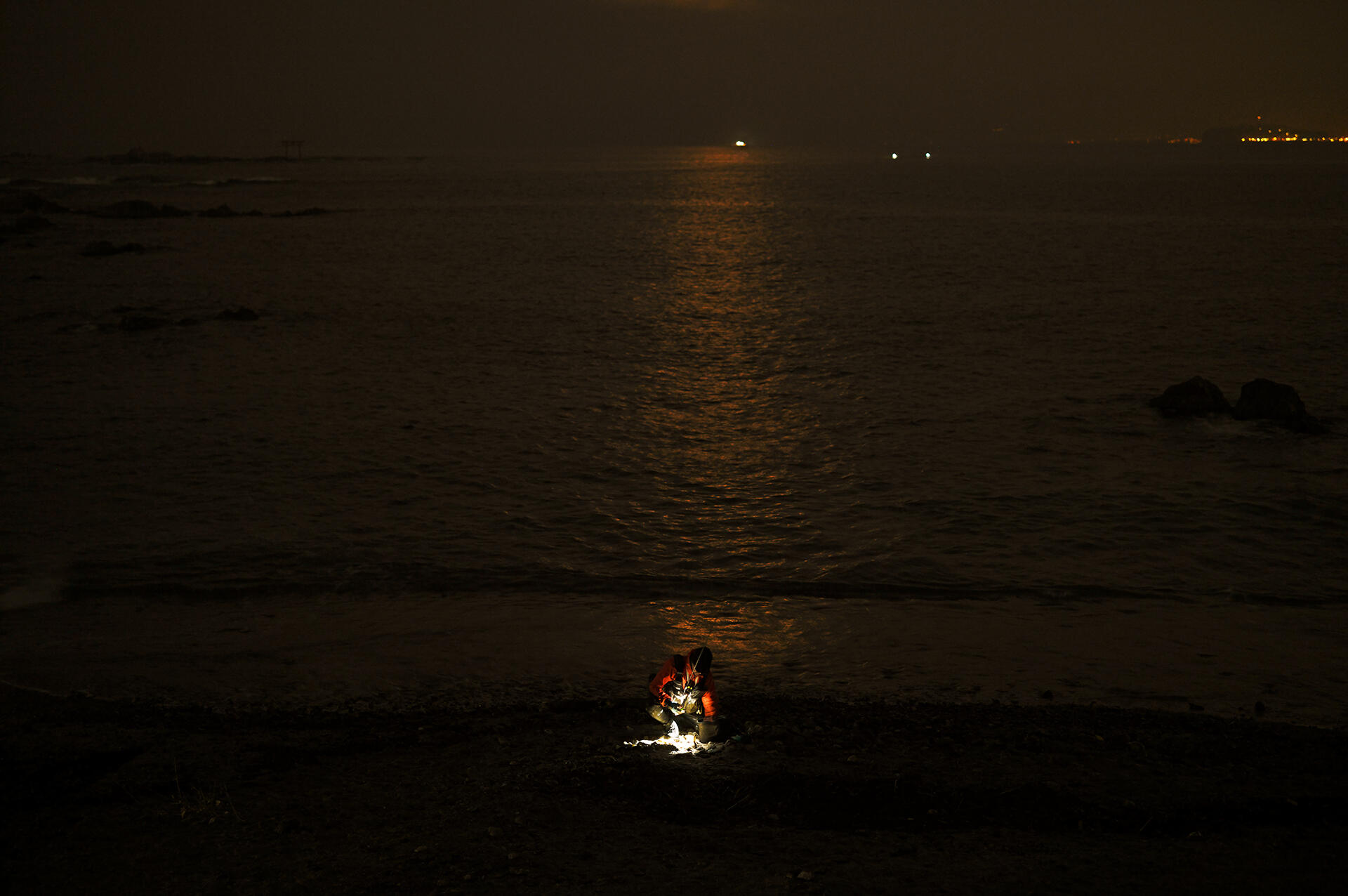 月が雲の中に完全に消える数分前、「月の道」が海面に長く伸び、釣り師が海岸に現れ仕掛けの準備を始めた。ヨット発祥の海は釣り場としても人気があり、暗いうちから釣り師の姿を見かける。