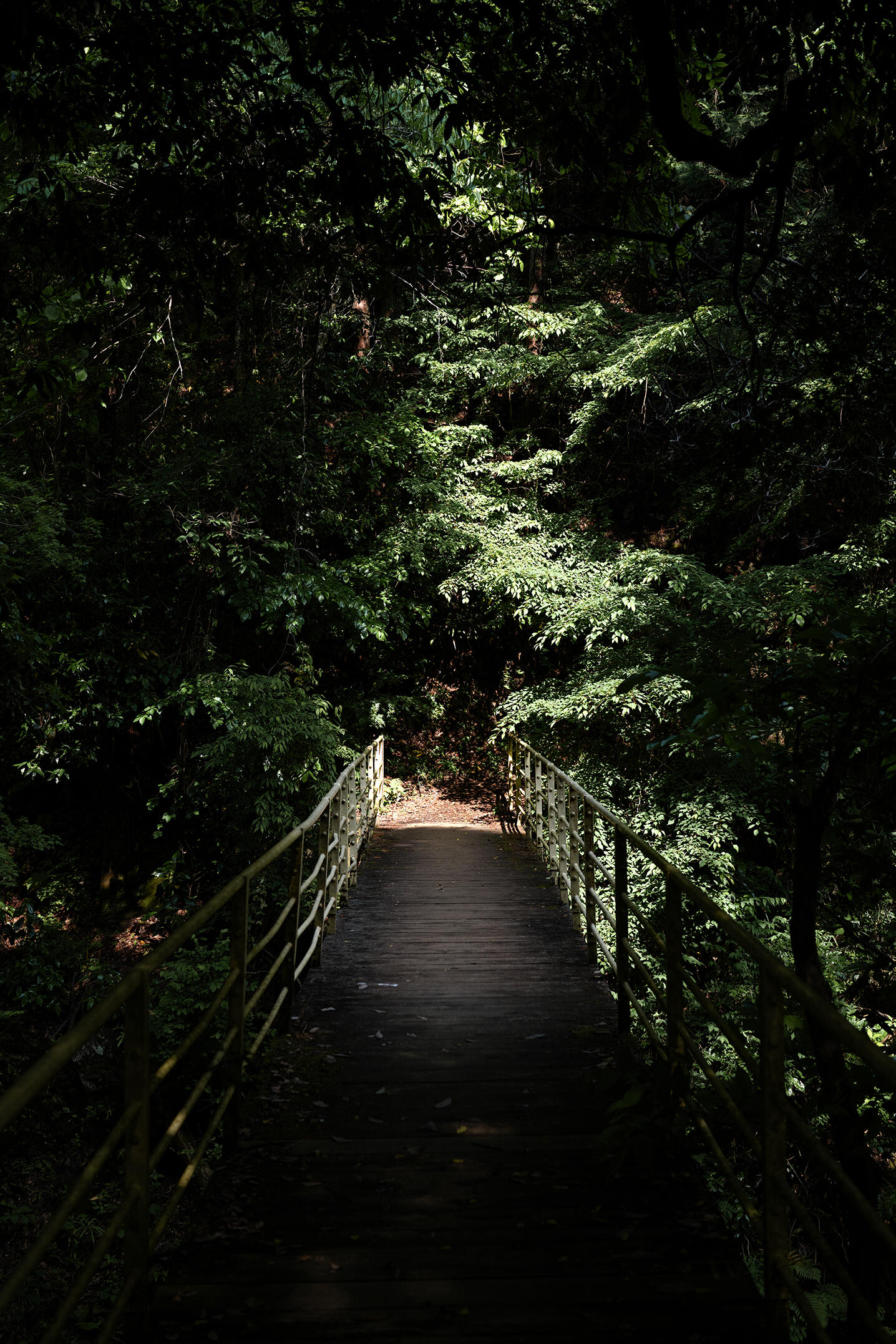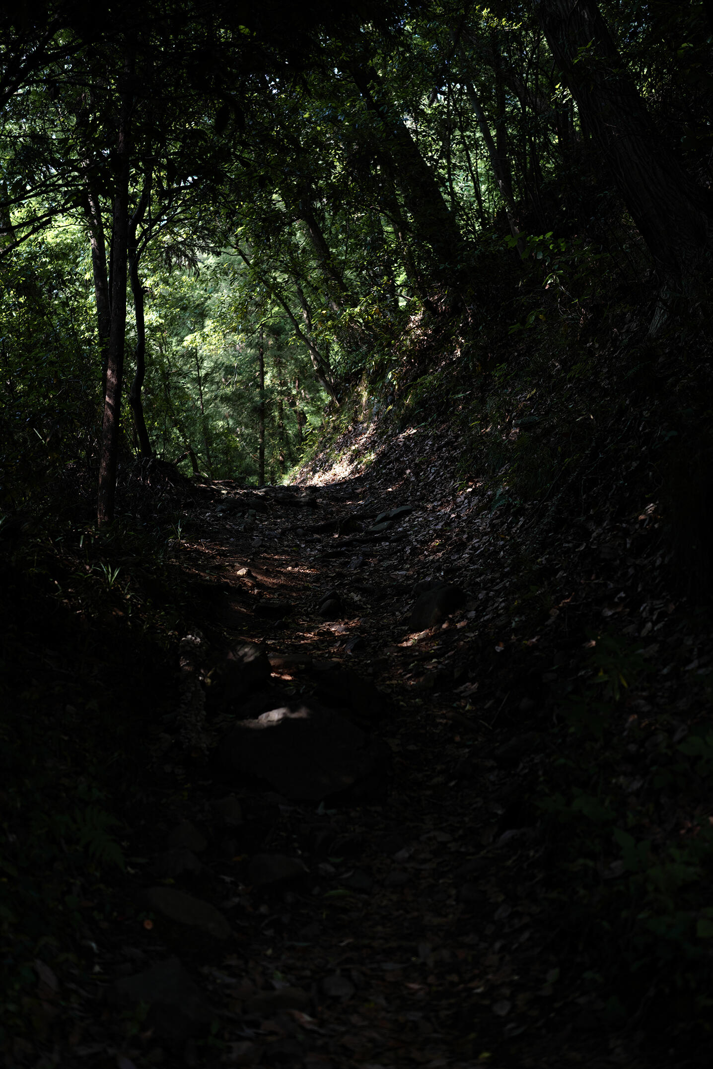 本陣の向かい側から山道に入る。新緑が美しい森の中を歩く。