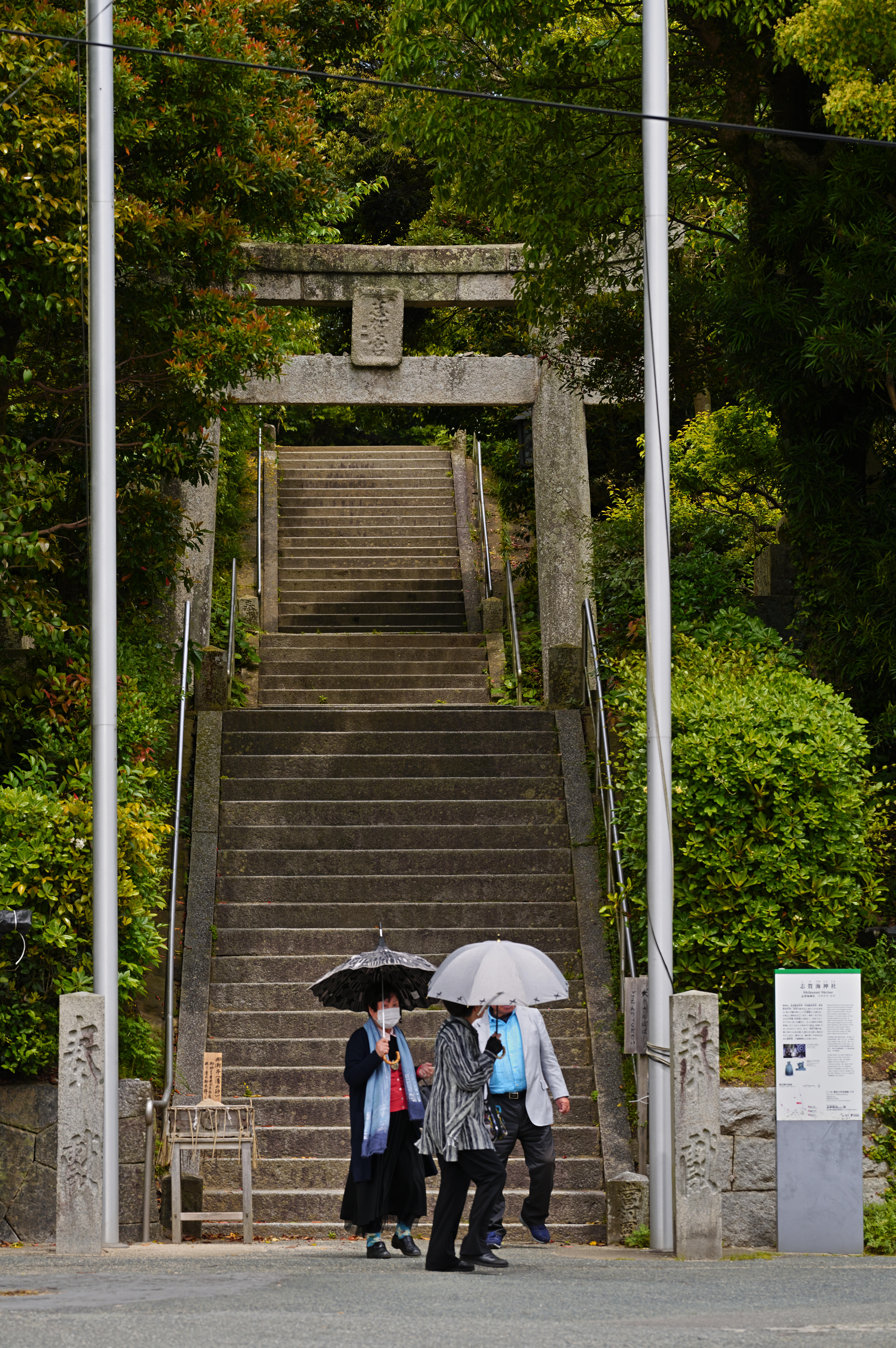 お昼近くなると参拝者が増えたが、境内へ続く石段は高齢者には急坂だ。