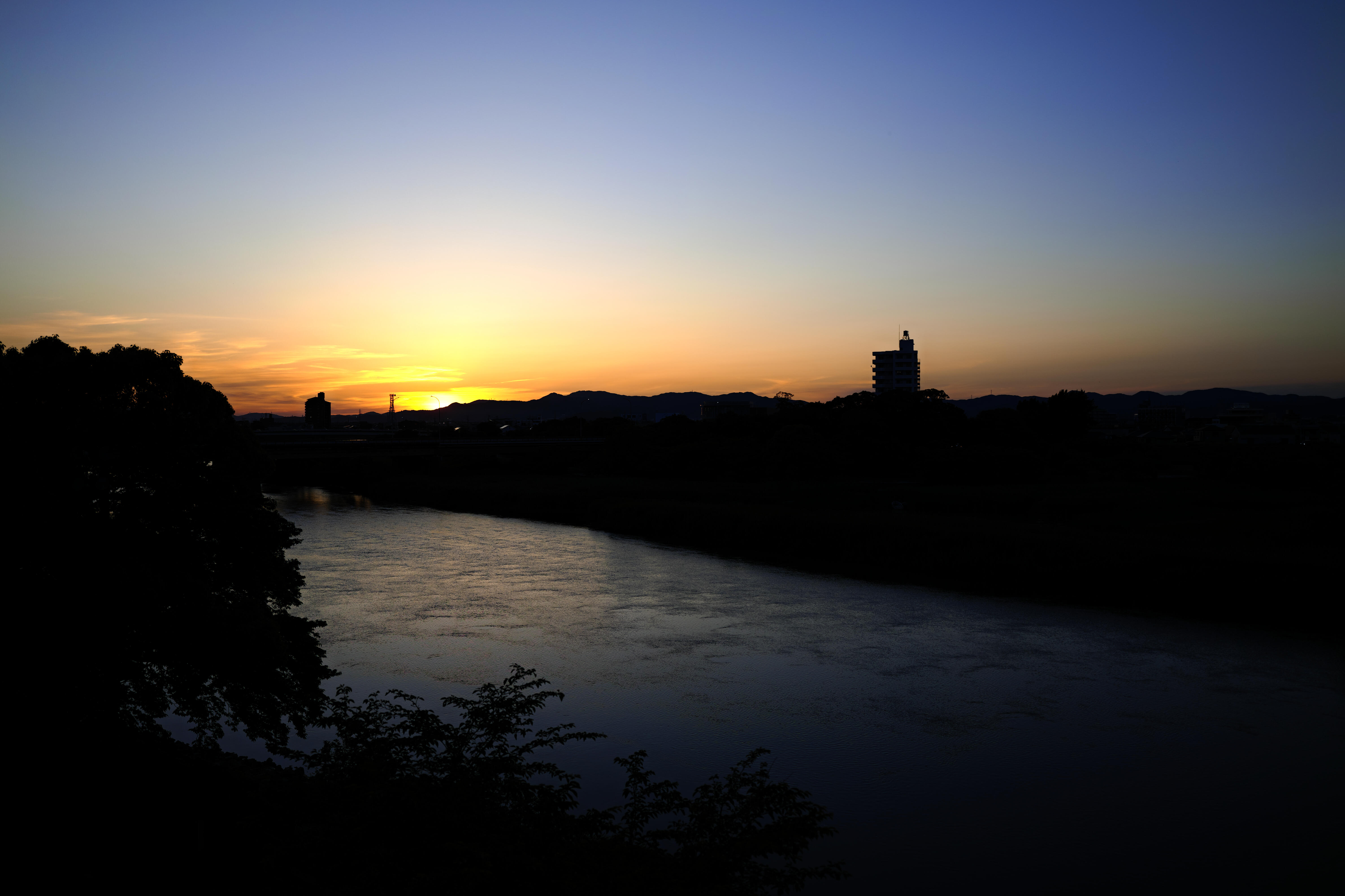 日没とともに空と川面がどんどんと色を変えていく。その美しいグ