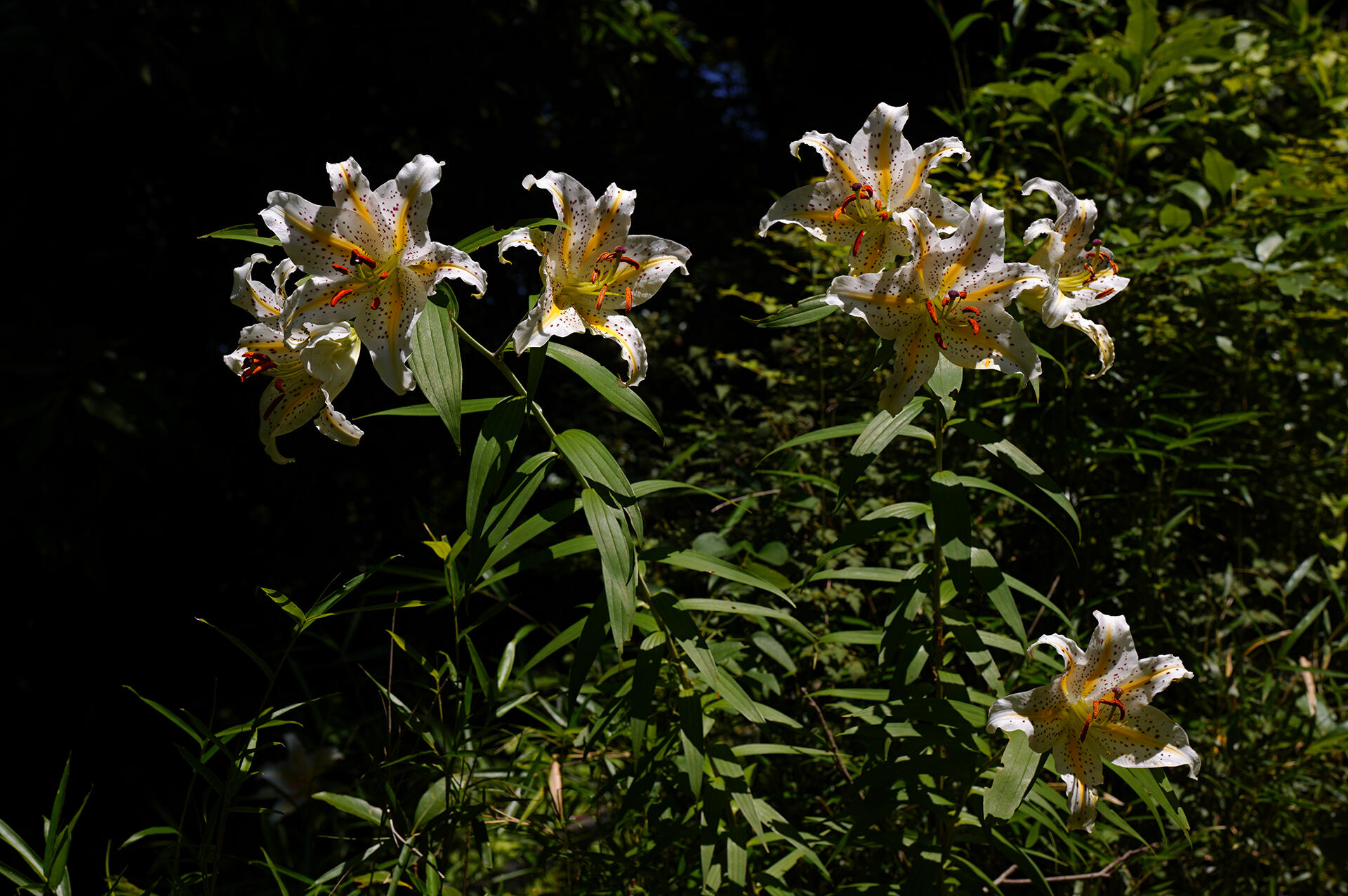 前日、タイトル写真用に撮った2本の茎は1つの蕾を残し開花していた。その他の茎からも花が咲き、群生とまではいかないが、ヤマユリのスポットとなっていた。