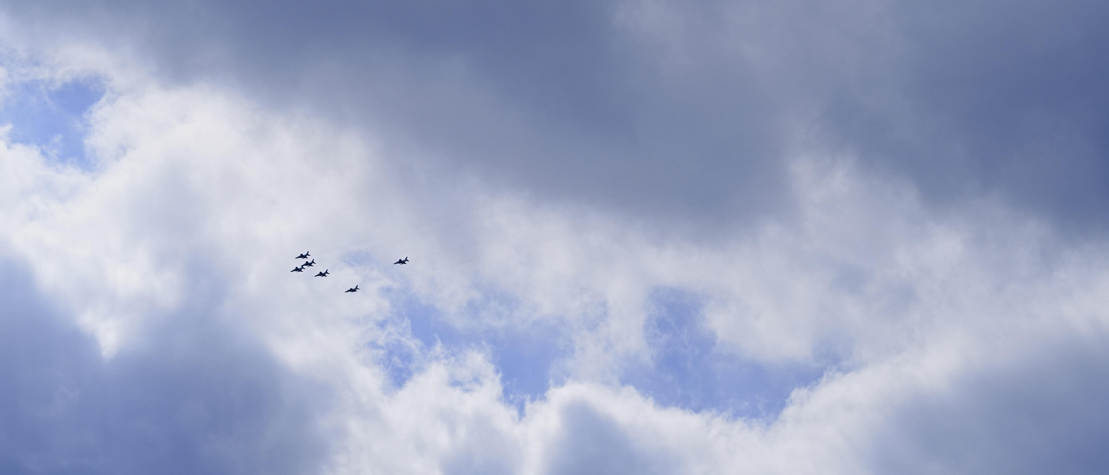 多摩川に架かる新二子橋の上でブルーインパルスが来るのを待ち構
