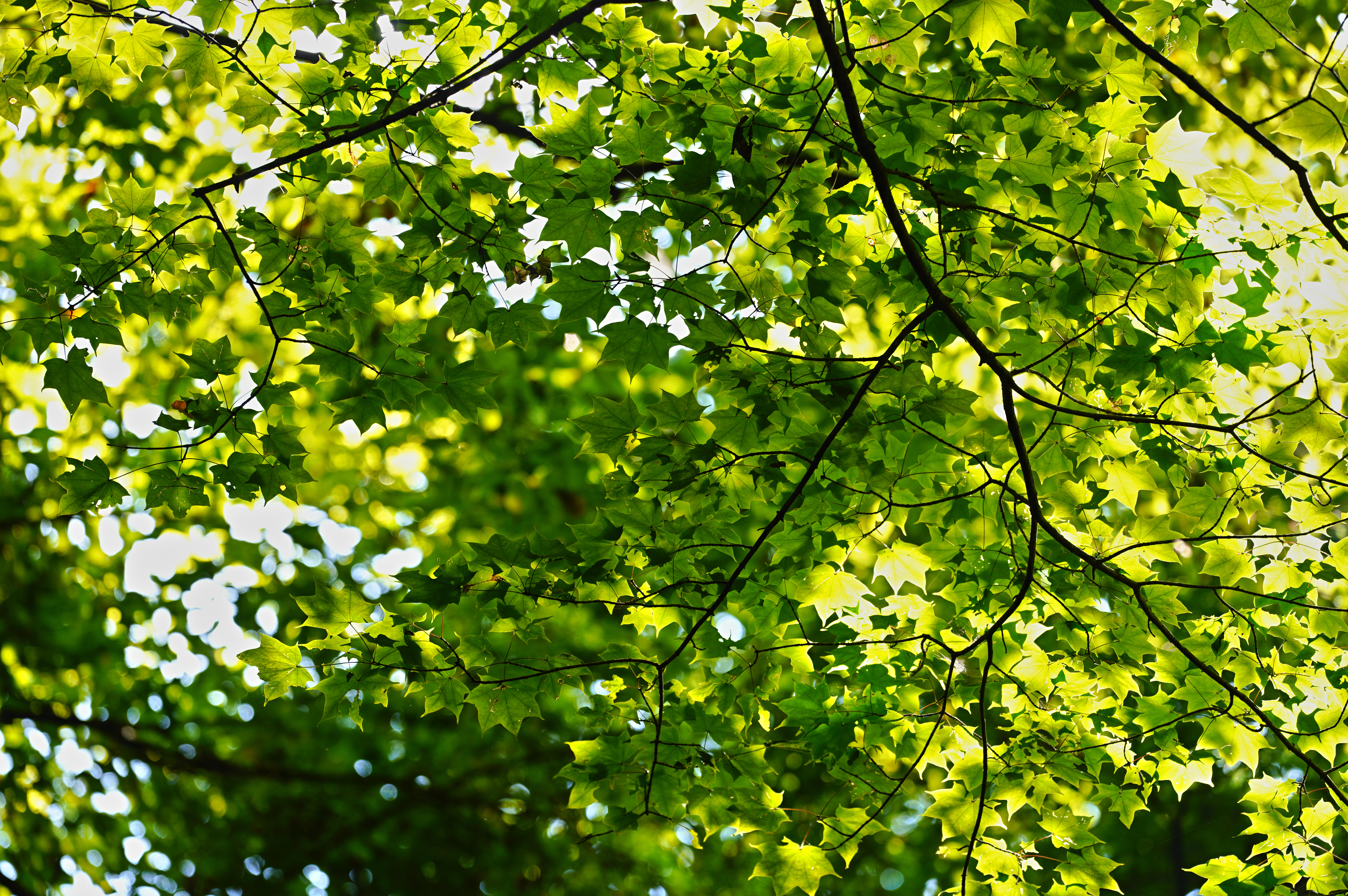 帰りは森に陽の光が差し、暑い一日の始まりを感じた。