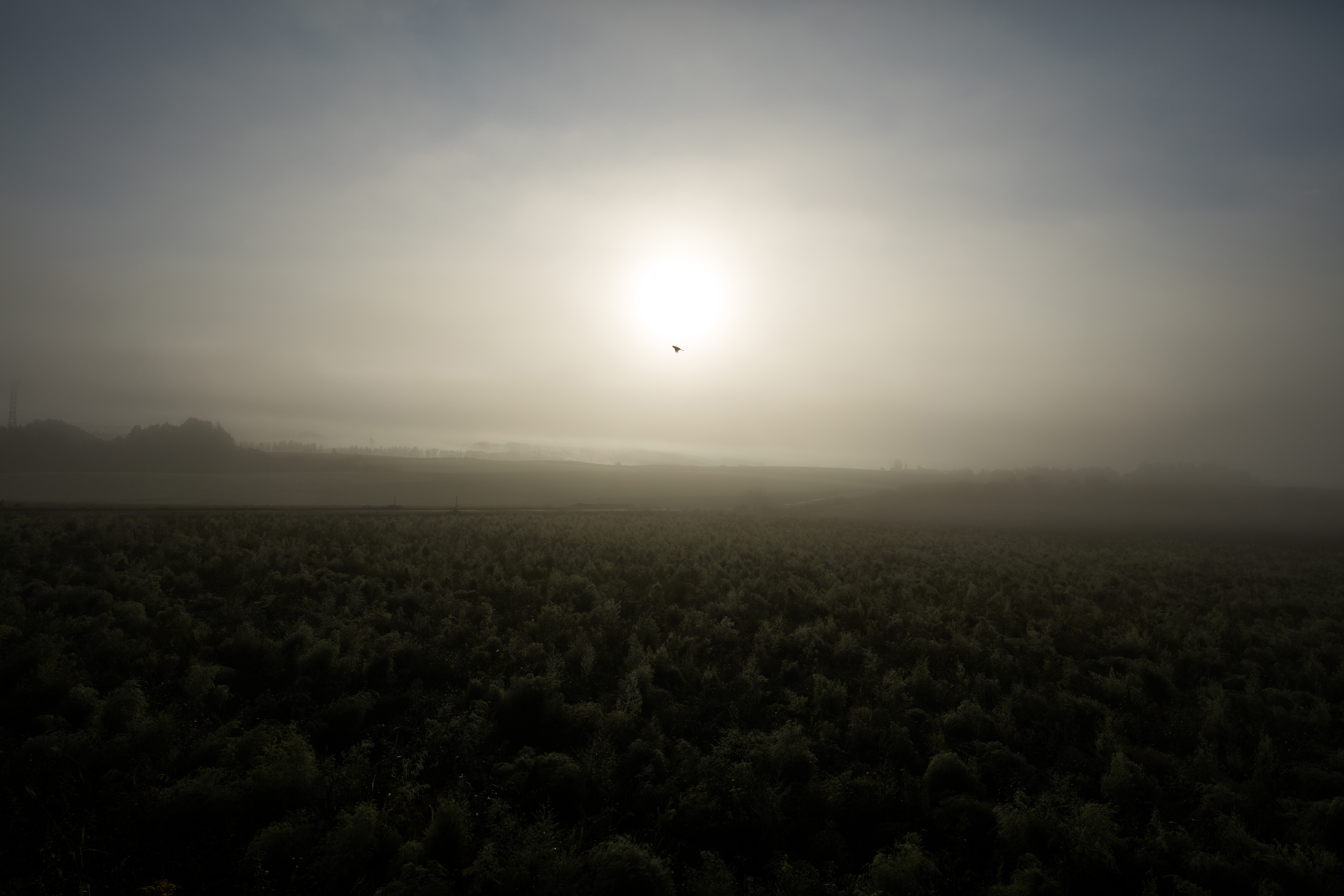9月中旬。東京はまだ猛暑の真っ只中にあったが、ここはすでに厚手のパーカーを着ていても震えるほど。幻想的な朝靄はその表情を刻々と変え、ちょっと気を抜くとすっかり様相が変わっていたりする。まだ太陽が顔を出す前の、じゅうぶんな光量が得られない時間帯ではあったが、そこはさすが開放F1.4。ISO感度を上げずに、三脚無しでもなんとか手ぶれを抑えられるシャッタースピードを選択することが出来た。