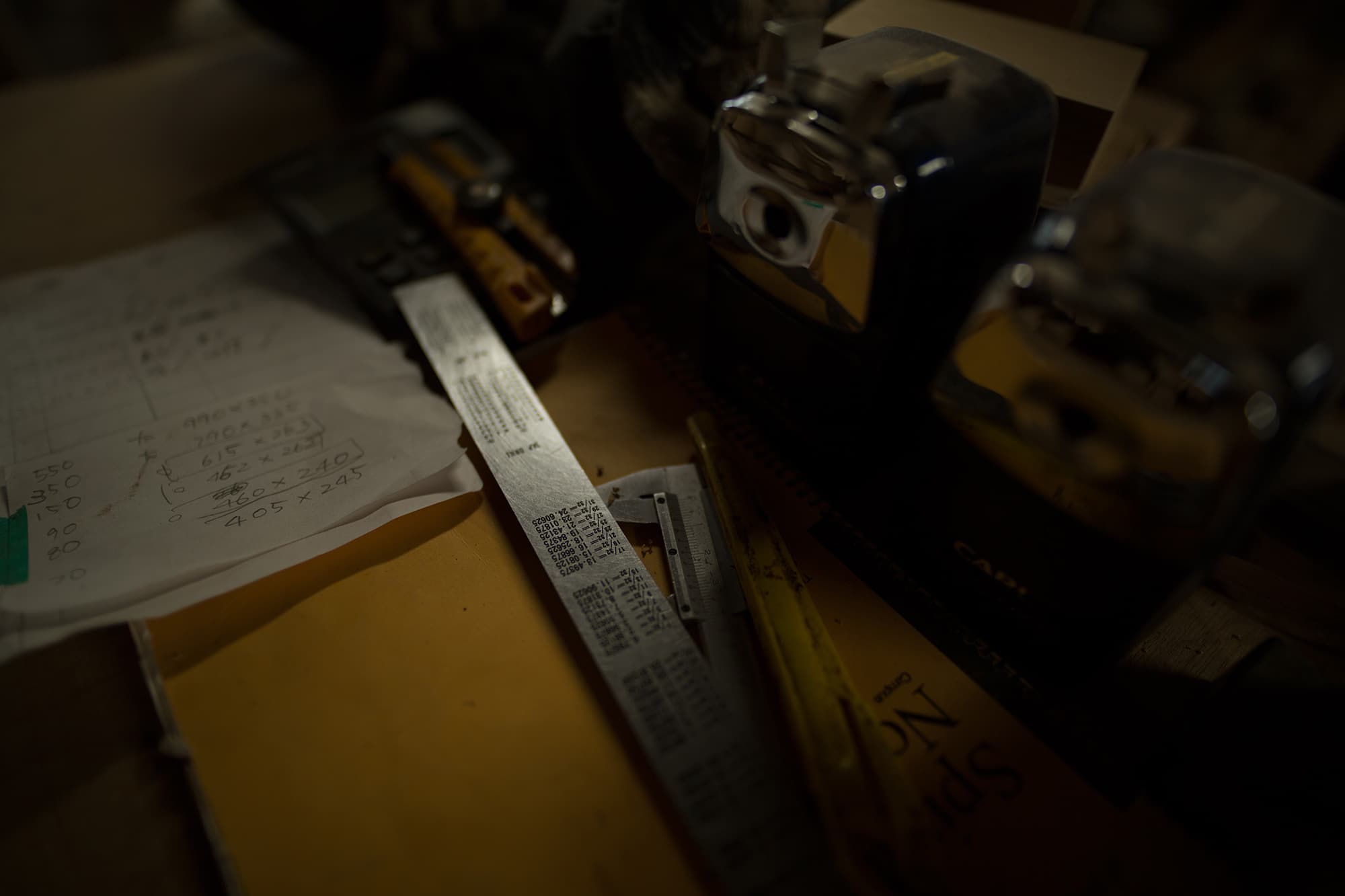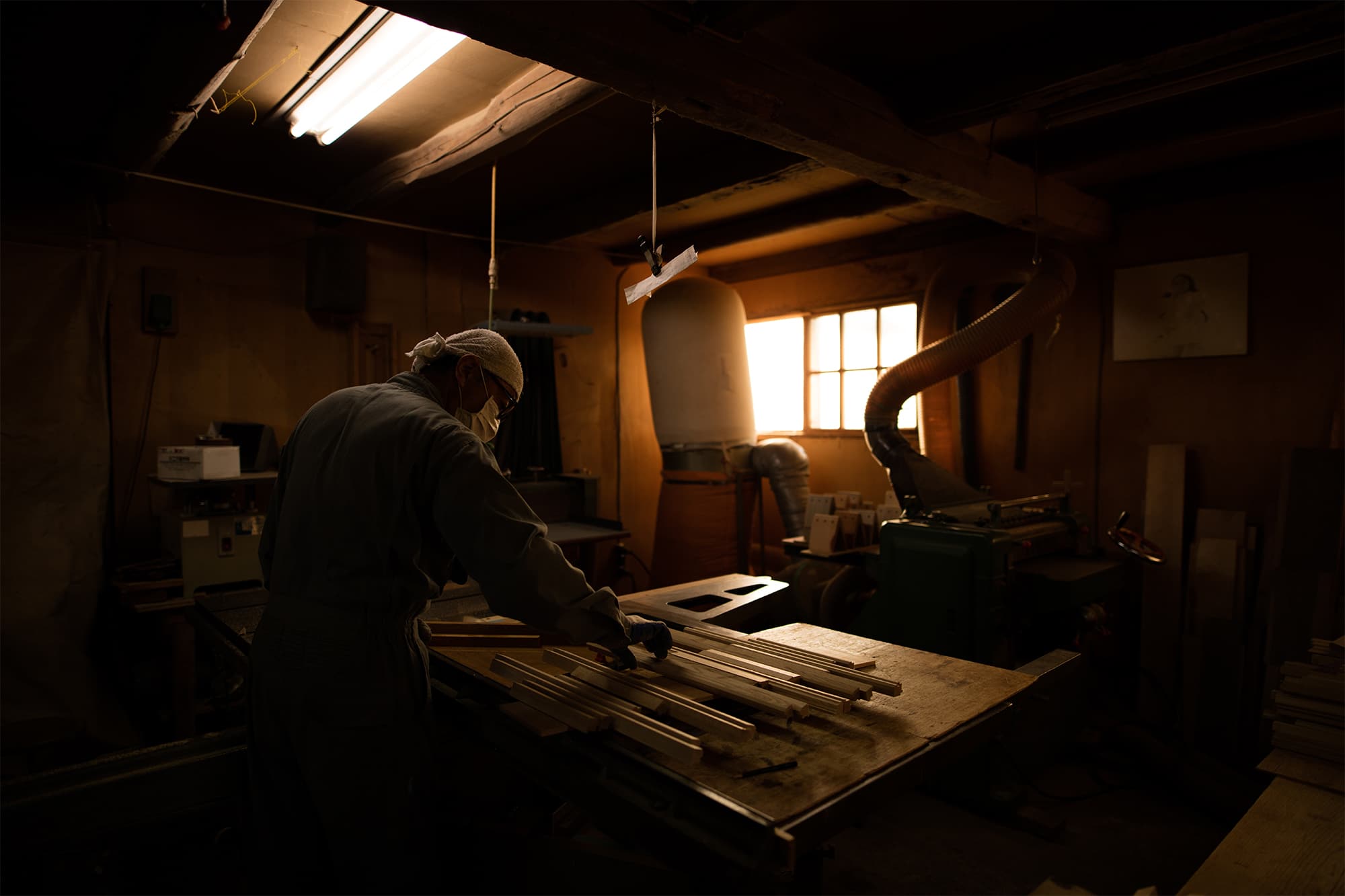 人里離れた山あいに、木工所を営む職人さんを訪ねた。工房に入った途端、おが屑の匂いが鼻孔を刺激する。「構わずお仕事を続けてください」とお願いして、勝手に撮らせてもらう。引きが無い、うす暗い、絶えず動く被写体、という状況は決して撮影向きとは言えないが、20mm F1.4という性能がそれらをすべてカバーした。来る日も来る日もここで家具を作り続ける職人さんの、目には見えないけど背負っているものを写したくて、慎重にピントを合わせた。