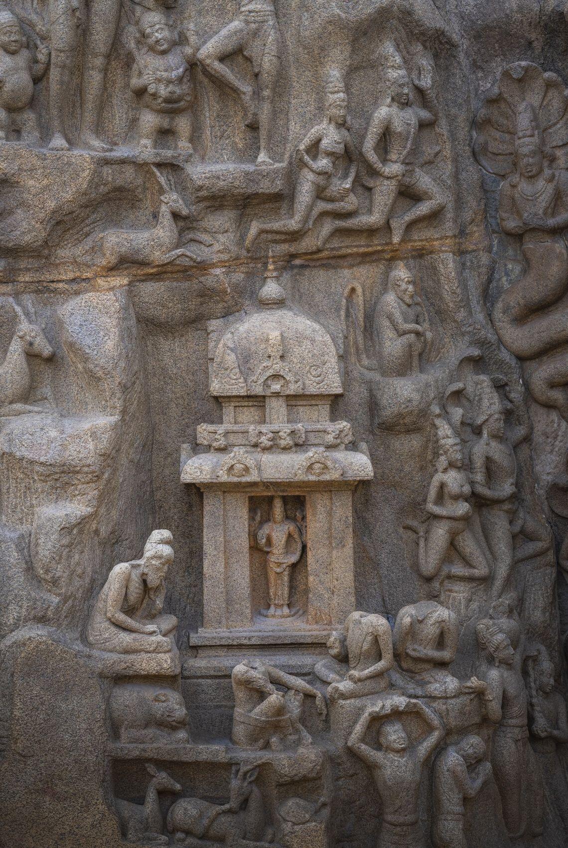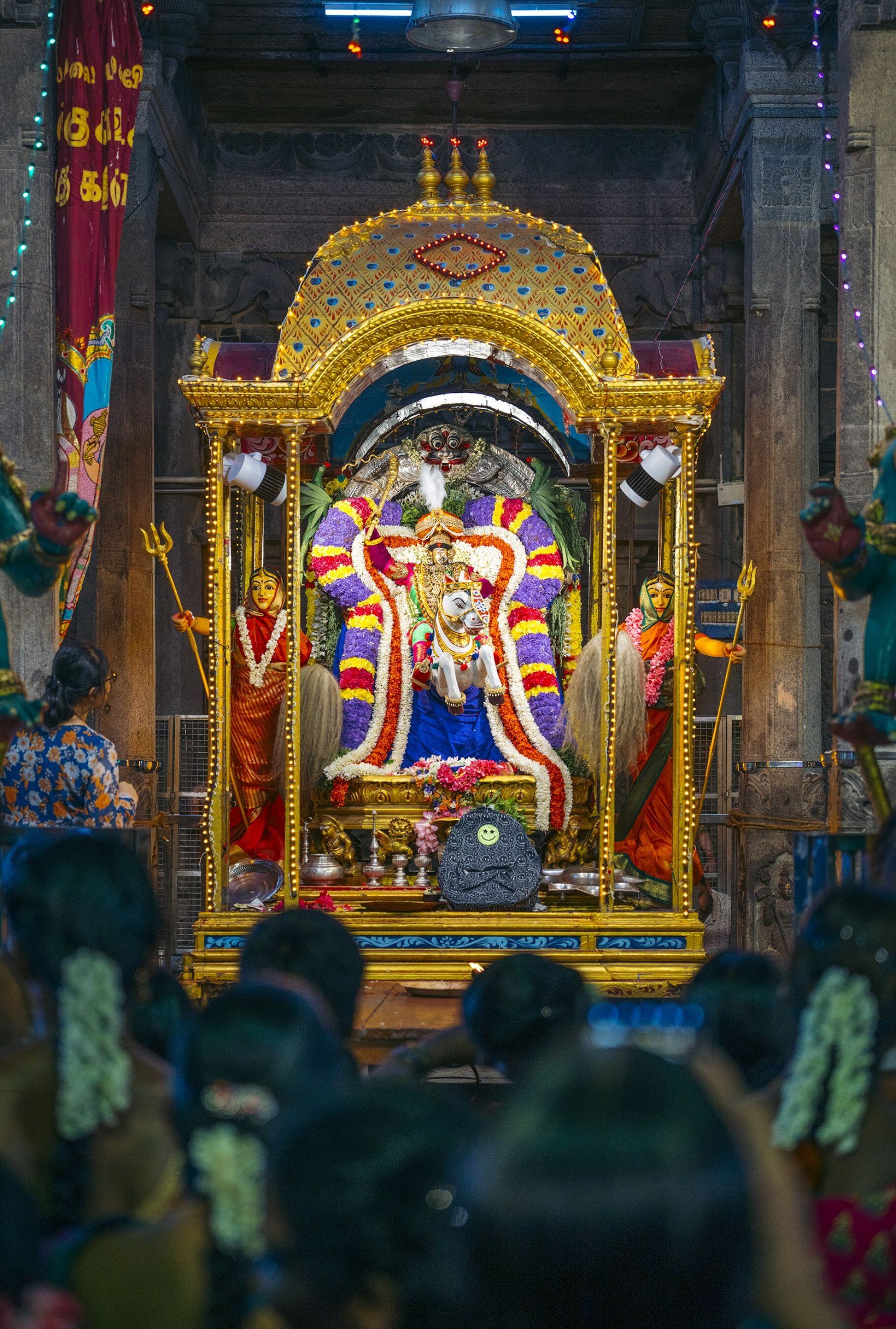 カーパーレシュワラ寺院を取り巻く通りには、様々な品物を売る屋台が立ち並んでいます。伝統的な人形を売っている屋台もあります。この人形はヒンドゥー教の神々の姿をかたどったもので、熟練の職人たちの手によって細部まで精巧に仕上げられています。人形たちは、この地域社会を支える宗教的・文化的な絆を体現する存在です。