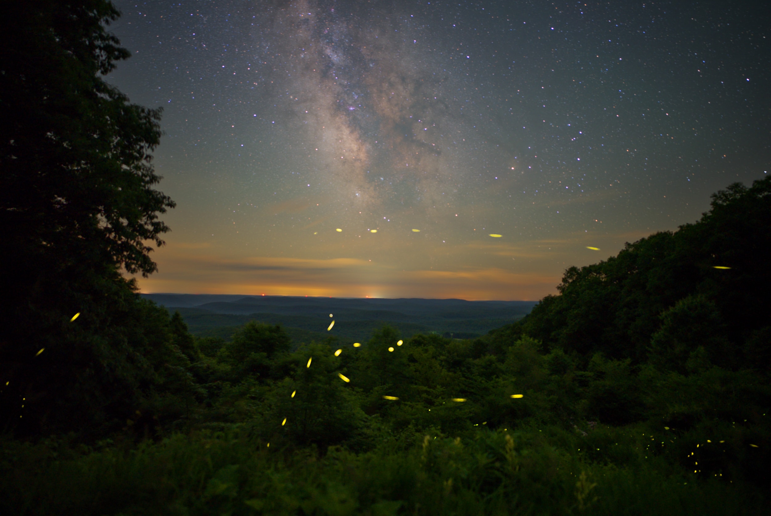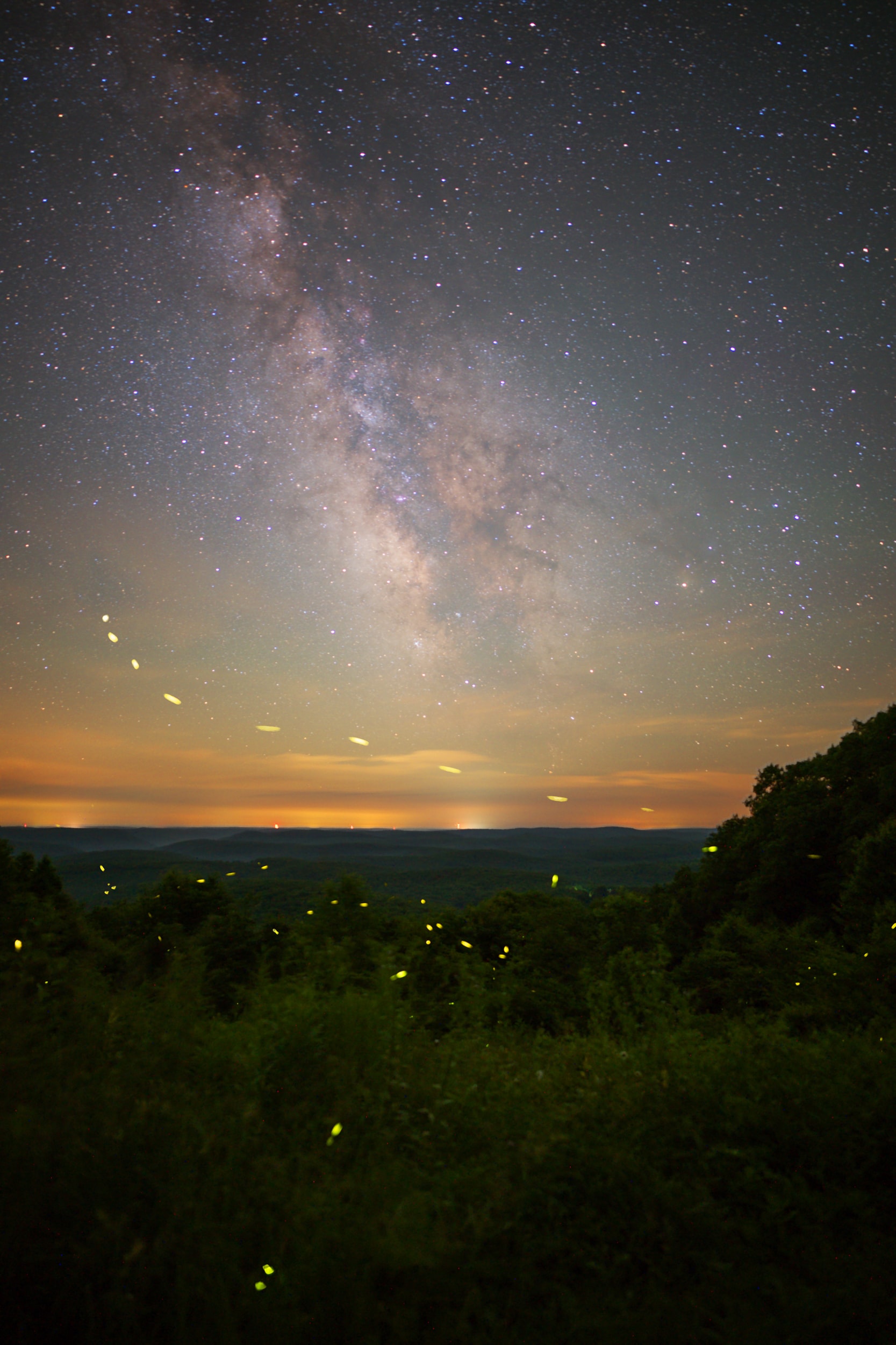 天の川の写真を撮影する間、周囲の野原にはこれまで見たことのないほどの数の蛍が舞っていました。絶景に魅入ってしまいそうになりながらも、その夜の仕事を終える前に数枚の写真を忘れずに撮影することができました。