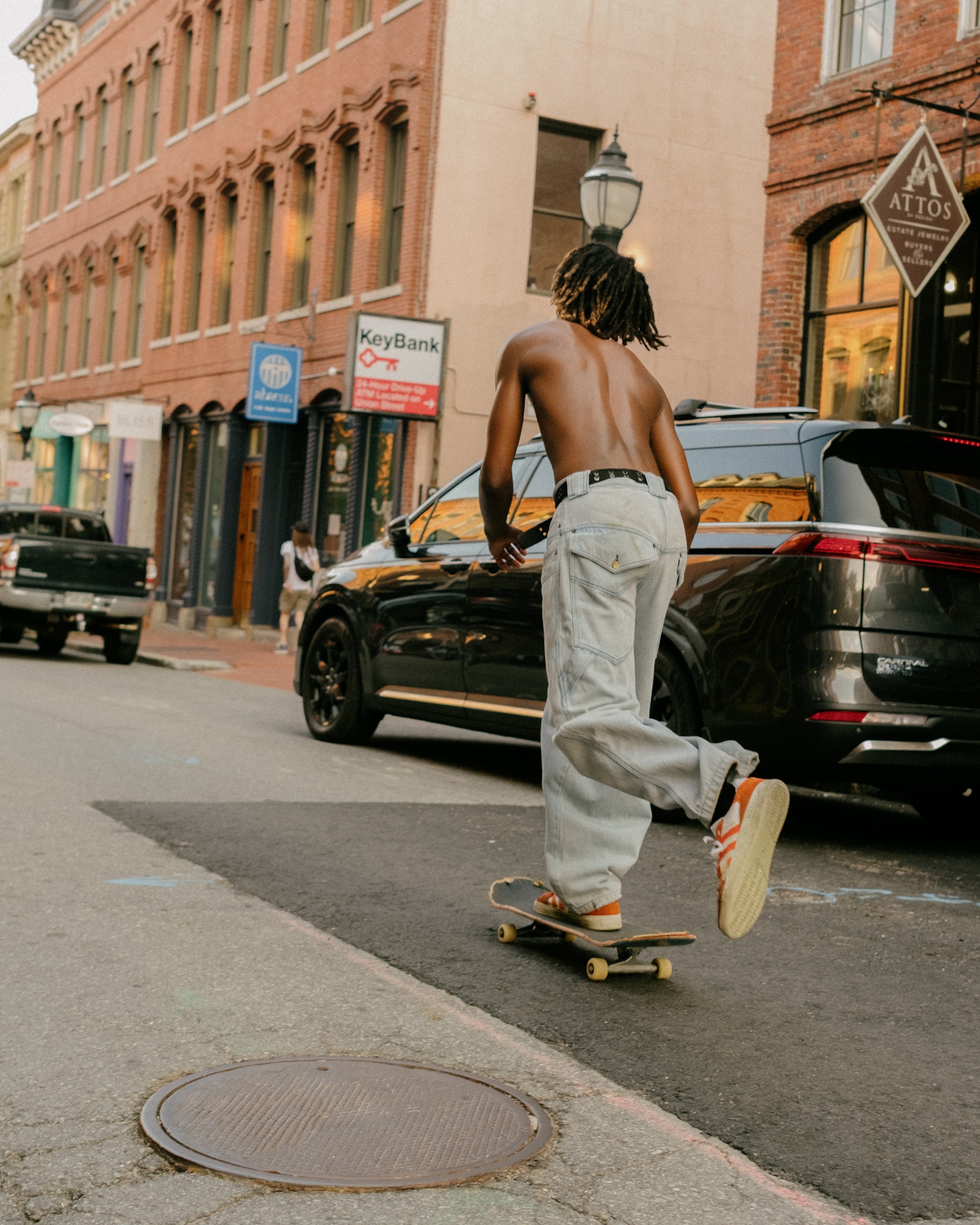 海岸沿いの街、ポートランドが最初の目的地でしたが、到着するなりオールドポート地区の佇まいに惹かれました。古いレンガ造りの建物と、そこで見つけたクールな若いスケーターとのコントラストが印象的で、彼のポートレートを撮りたくなりました。こうやって新しい人々に出会い、ほんの一瞬彼らの世界に入り込めるというのが、私にとってのストリートスナップの醍醐味です。以前は誰かにポートレートを撮らせてほしいと頼むのは恥ずかしかったのですが、何年もやっているうちに比較的簡単にできるようになりました。まず、どのようなところが素敵に見えているかを伝え、次に私自身が何をしている人なのかを話してから、ポートレートを撮らせてほしいと頼みます。そうすると、彼らはたいていイエスと答えてくれるのです。重要なのは、自分の意図を正直に伝えることと、相手から笑顔を引き出すことです。