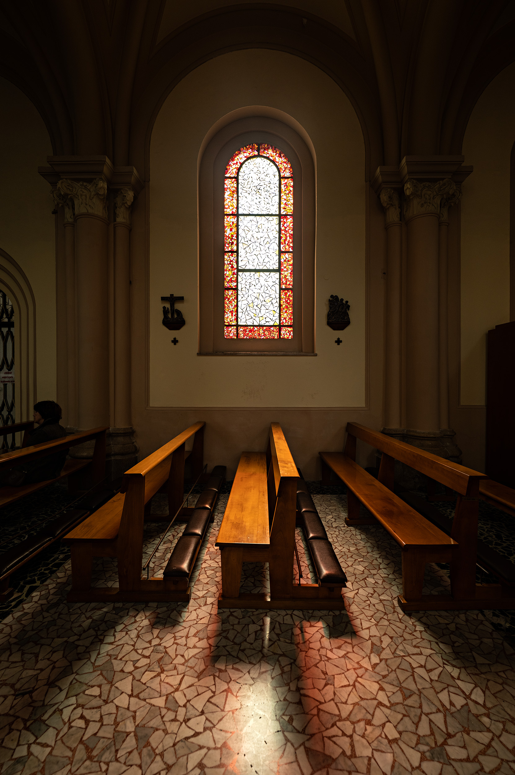 教会は他の一般的な建物とは一線を画す建築物です。神と信者の間に設けられた架け橋であり、そこに足を踏み入れた者に尊敬の念を抱かせるような厳かな雰囲気を演出する必要があります。写真と同様に、光はこういった特別な空間で重要な役割を果たします。写真家として、光と影の構図を試行錯誤することはいつも楽しいことですが、明るさを際立たせるためには暗闇が重要です。