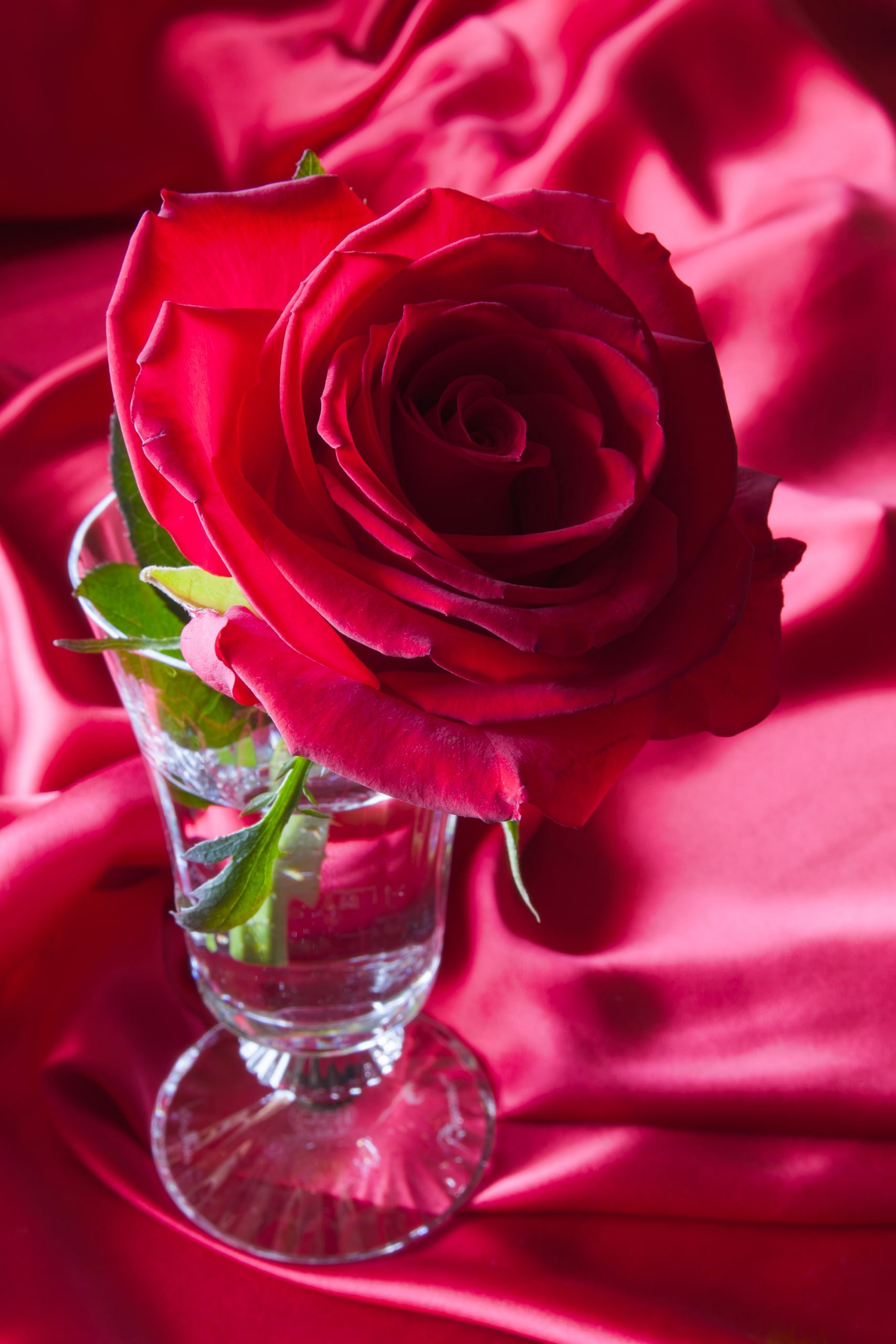 赤いシルクの布を背景にして真っ赤なばらの花を撮影した。シルク独特の柔らかい風合いを写真に写し撮ることは、ライティングなどを駆使してもなかなか難しいものだ。